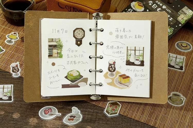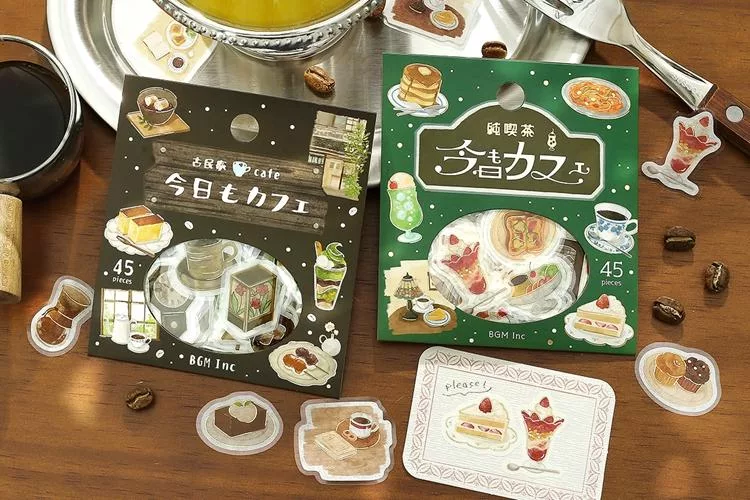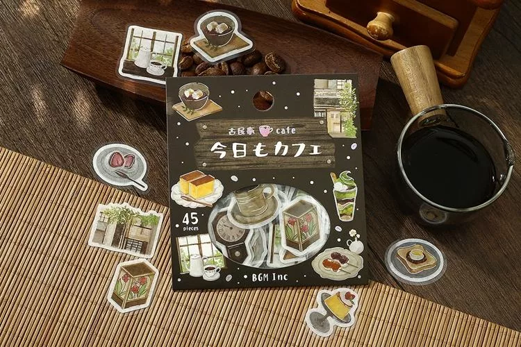 ▼【日本BGM】散裝金箔和紙貼紙包45入 ‧ 今天也去咖啡廳-純喫茶