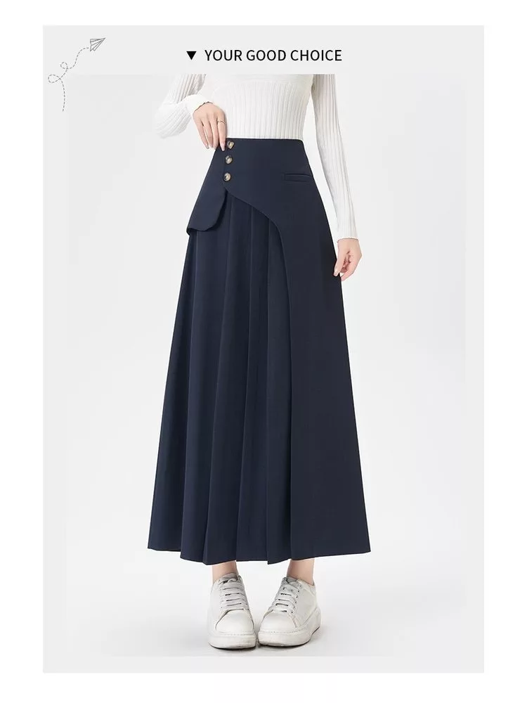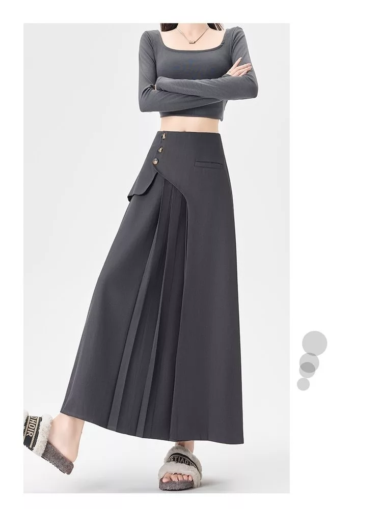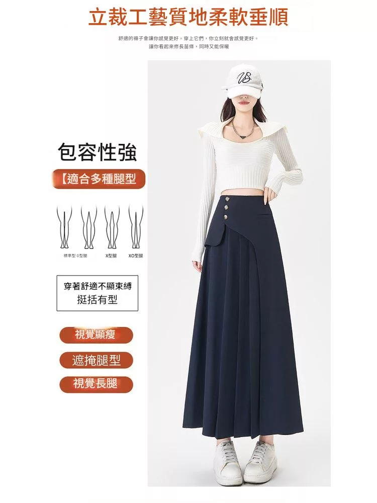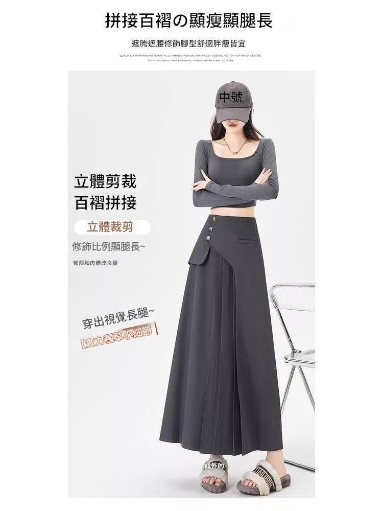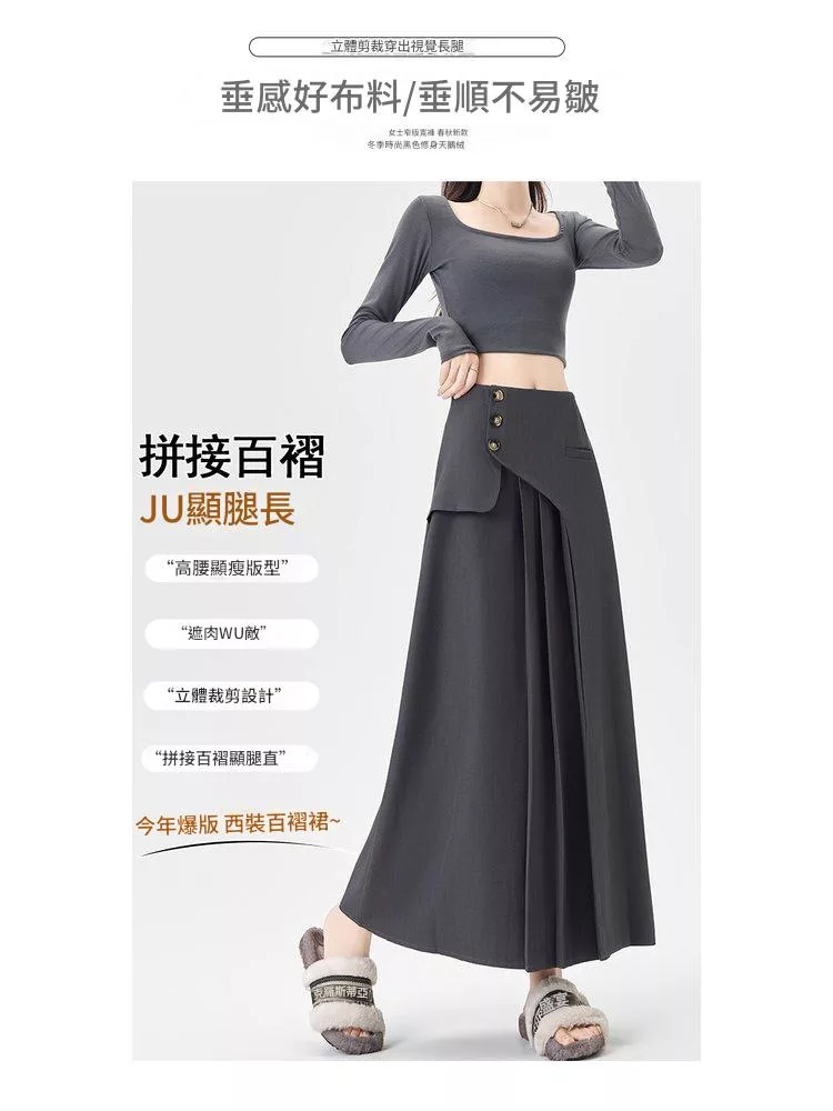 西裝百褶高腰顯瘦小個子A字長西裝裙#