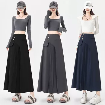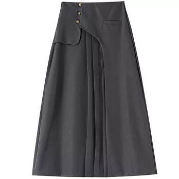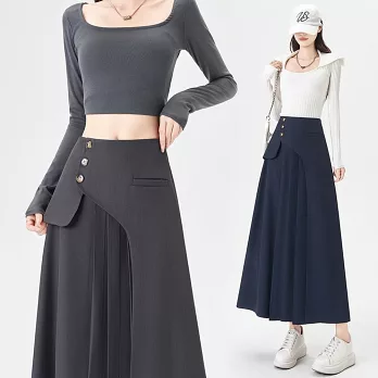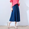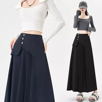 【慢。生活】半鬆緊單排釦造型牛仔A字中長裙 K50391 FREE 深藍色