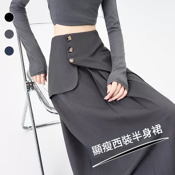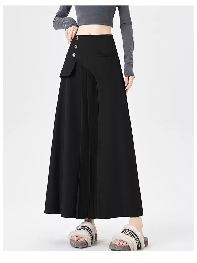 【MsMore】 西裝百褶高腰顯瘦小個子A字長西裝裙# 126806 M 黑色