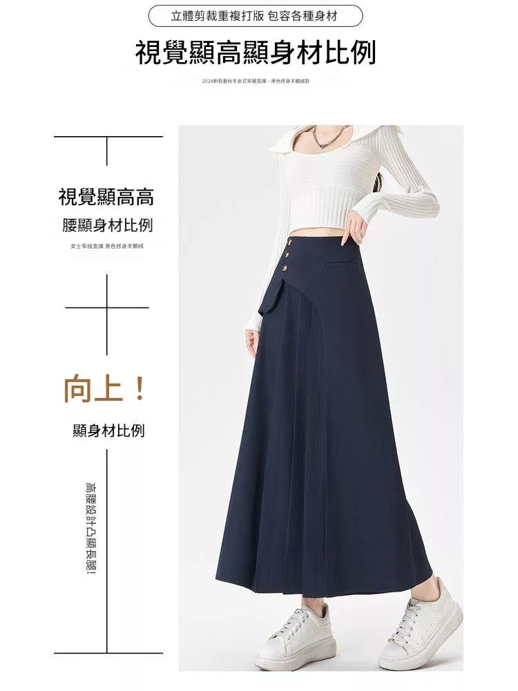 【Jilli~ko】垂感壓褶紋理半身裙女金絲絨高腰顯瘦 J11165 FREE 黑色