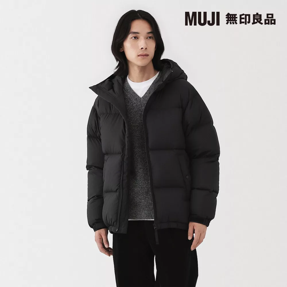 【MUJI 無印良品】男防風撥水加工鋪棉連帽外套 S 灰銀