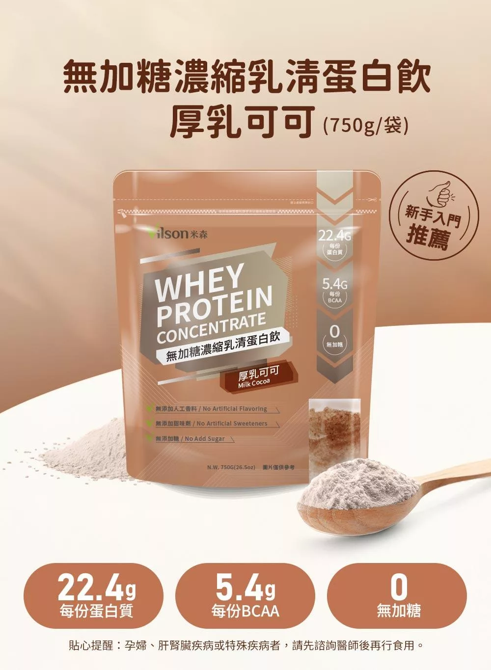 【vilson 米森】無調味濃縮乳清蛋白粉 -厚乳可可 (750g/袋)