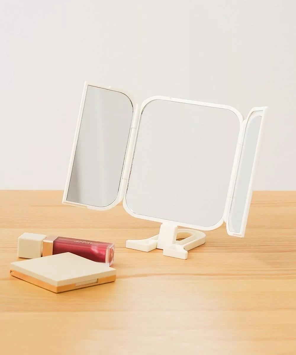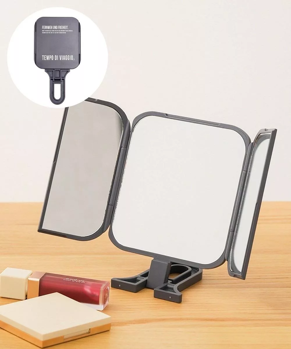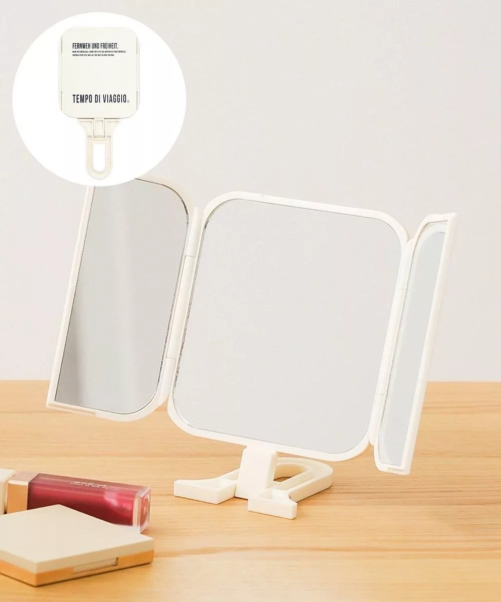 【日本霜山】手持可立兩用式化妝鏡/補妝鏡/手拿鏡/桌上鏡- 白