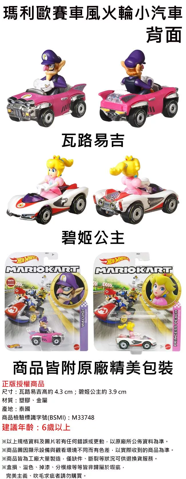 【正版授權】瑪利歐賽車 風火輪小汽車 玩具車 - 碧姬公主
