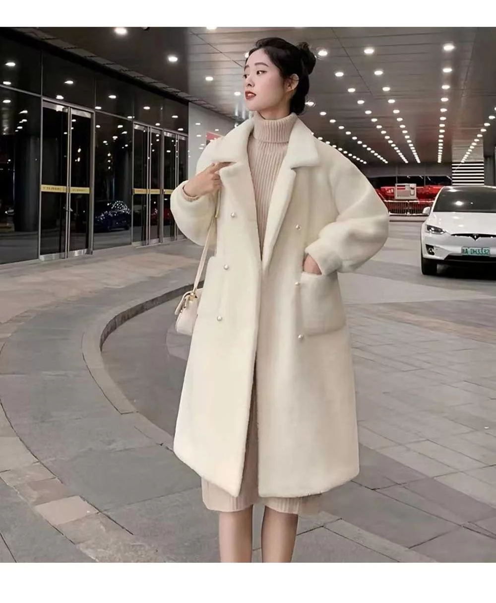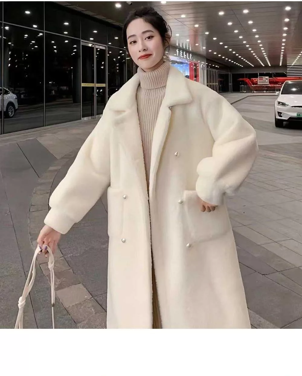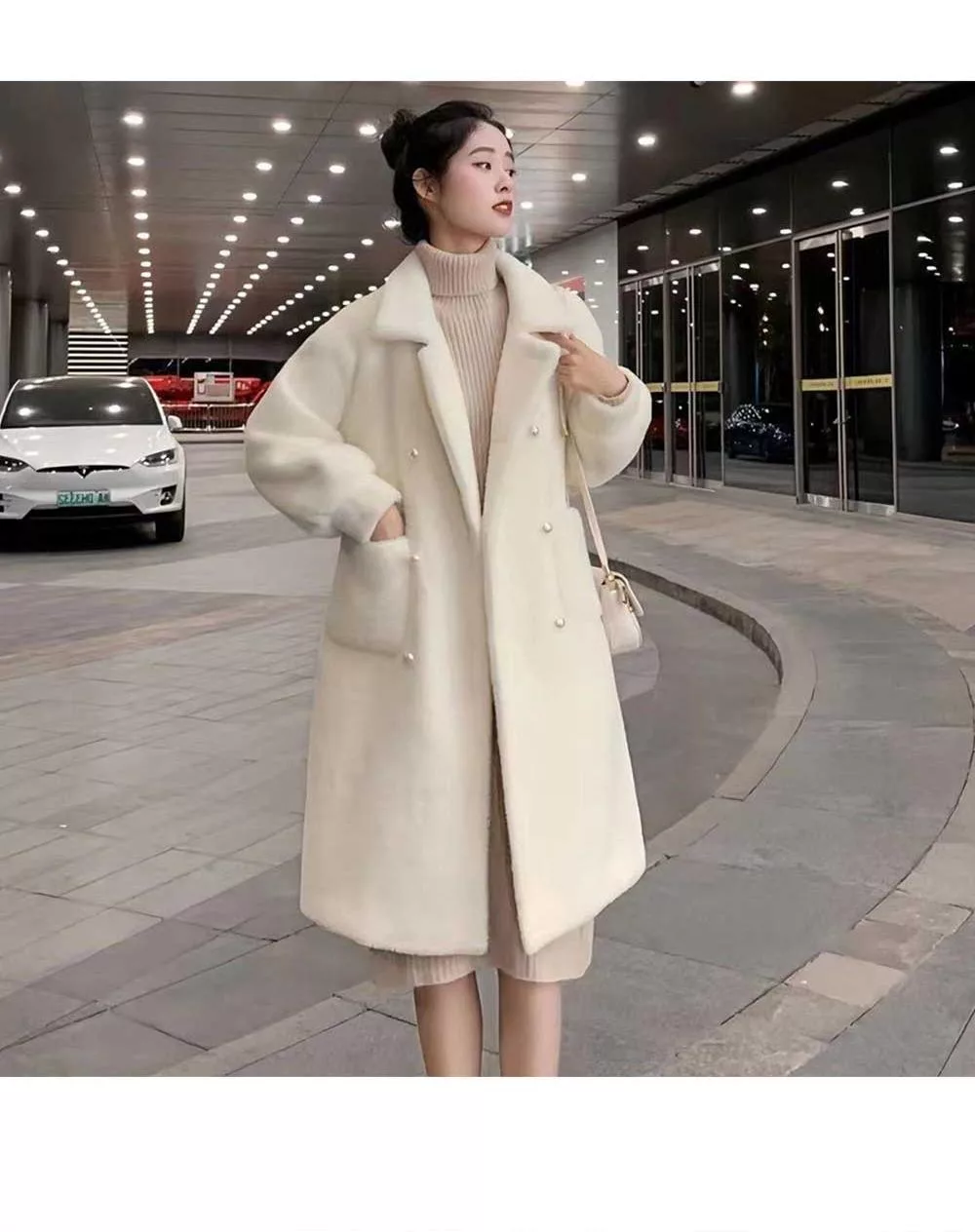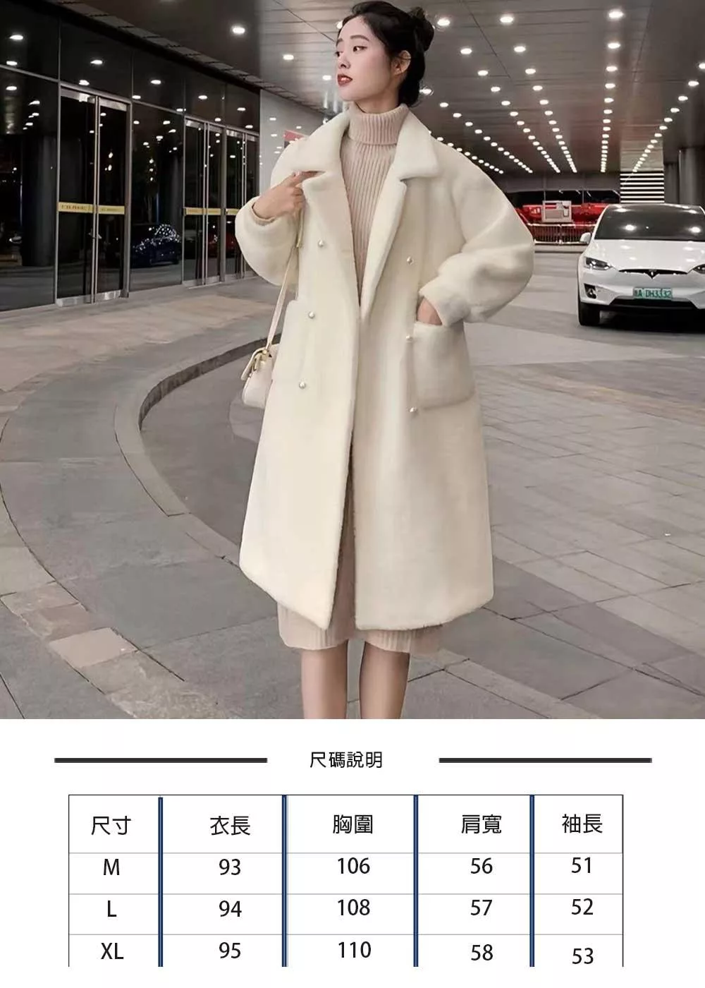 雙面仿水貂絨加厚大衣 白色 M-XL 聚脂纖維