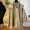 【MsMore】 風衣中長款外套小個子百搭寬鬆口袋連帽長袖工裝# 123522 M 咖色