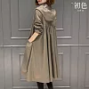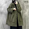 【初色】復古工裝純色寬鬆大口袋連帽排釦落肩長袖風衣外套女外套-共3色-16745(L-2XL可選) L 軍綠色