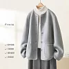 ltyp旅途原品 100%澳洲進口高支羊毛微寬鬆短版雙面呢大衣女冬高領外套 M L-XL M 灰石墨綠