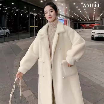 【AMIEE】雙面仿水貂絨加厚大衣(KDCQ-7880) M 白色
