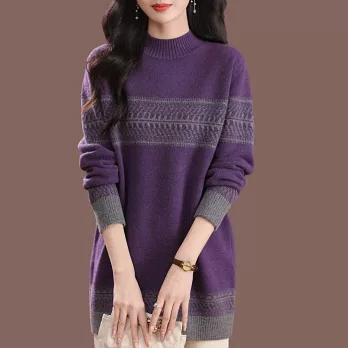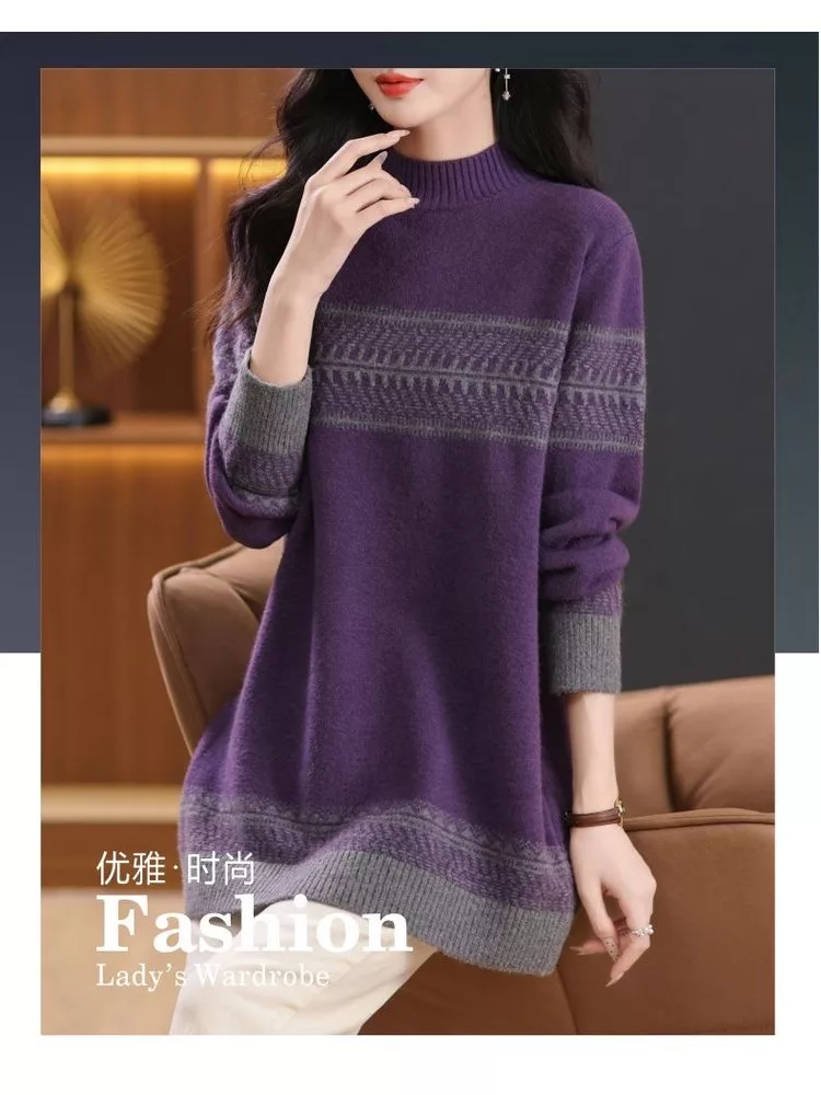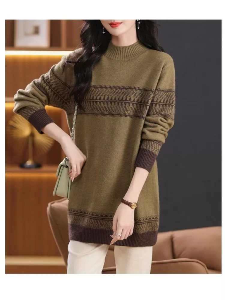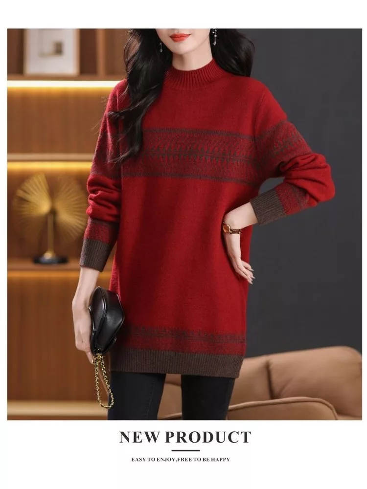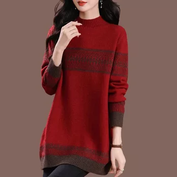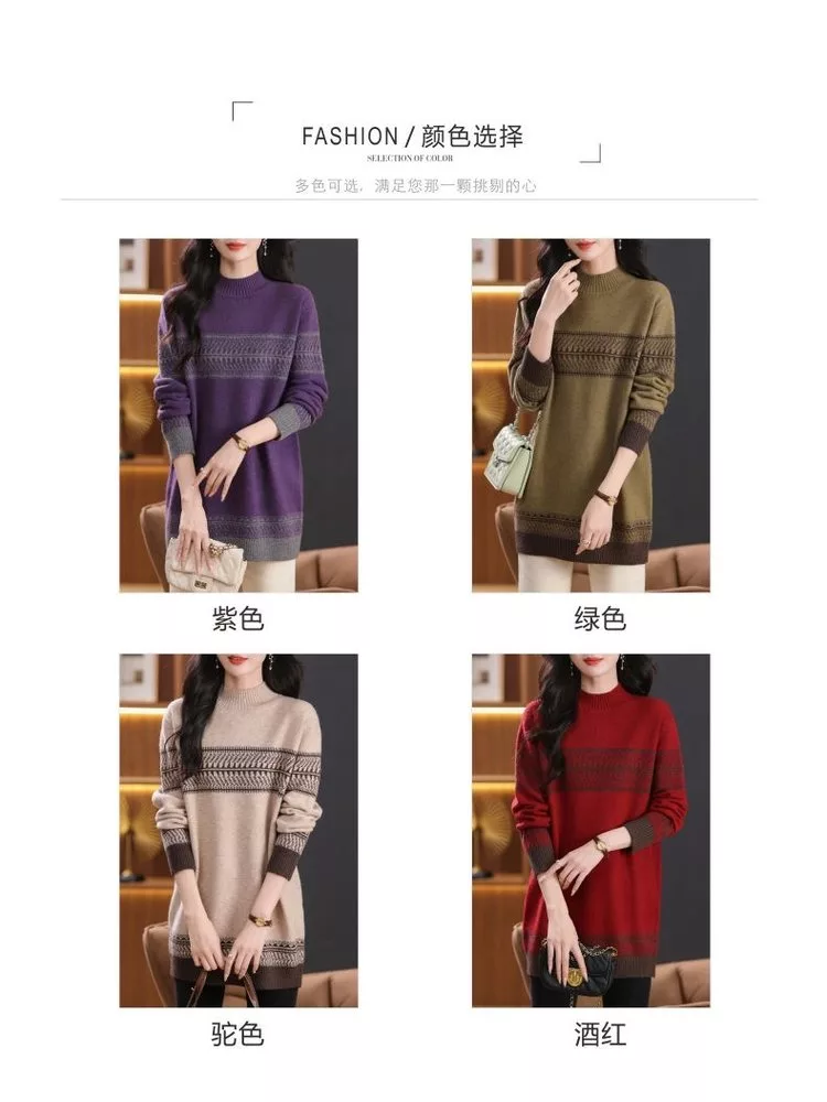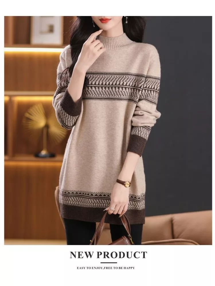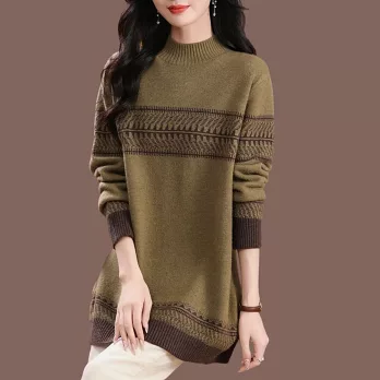 【MsMore】 半高領毛衣寬鬆遮肚中長款內搭羊毛感針織上衣# 126931 FREE 棕色