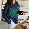 【Jilli~ko】經典學院風圖案落肩針織衫 6361 FREE 深藍色