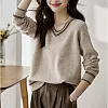 【MsMore】 羊毛感韓版’雞心領針織長袖上衣# 125954 FREE 咖色