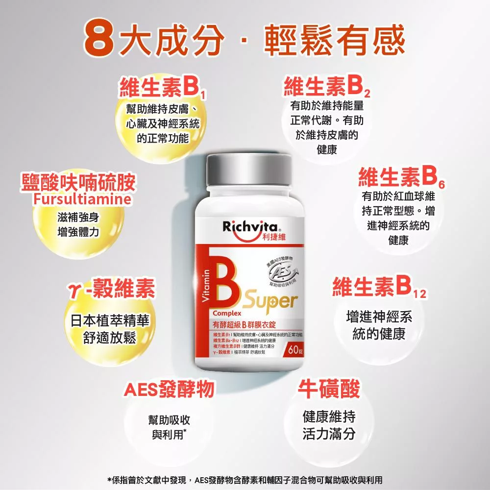 【Richvita利捷維】有酵維生素(60錠) B群+鋅EX錠(男性)