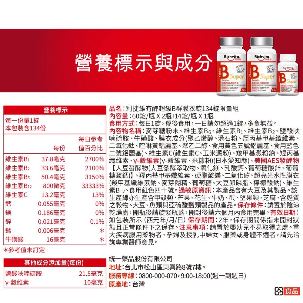 【Richvita利捷維】有酵維生素(60錠) B群+鋅EX錠X3