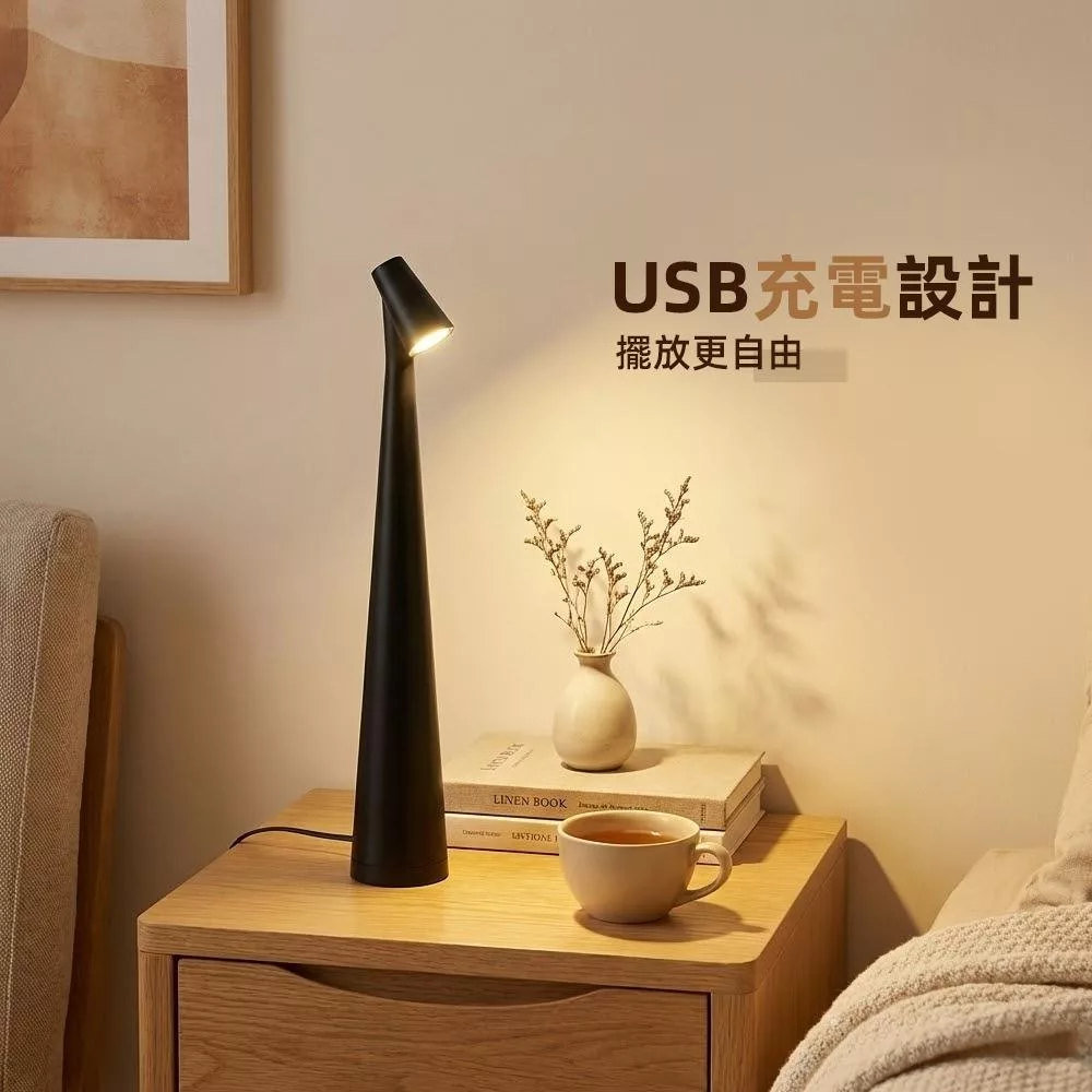這款純粹LED檯燈,以細長高腳的俐落線條融入任何空間。三段暖光能陪你閱讀、放鬆或當夜燈使用,光線柔和不刺眼。觸控式操作非常直覺,加上USB充電擺放自由,不受插座限制。放在床頭、書桌或客廳角落,都能立即提升空間質感與氛圍。