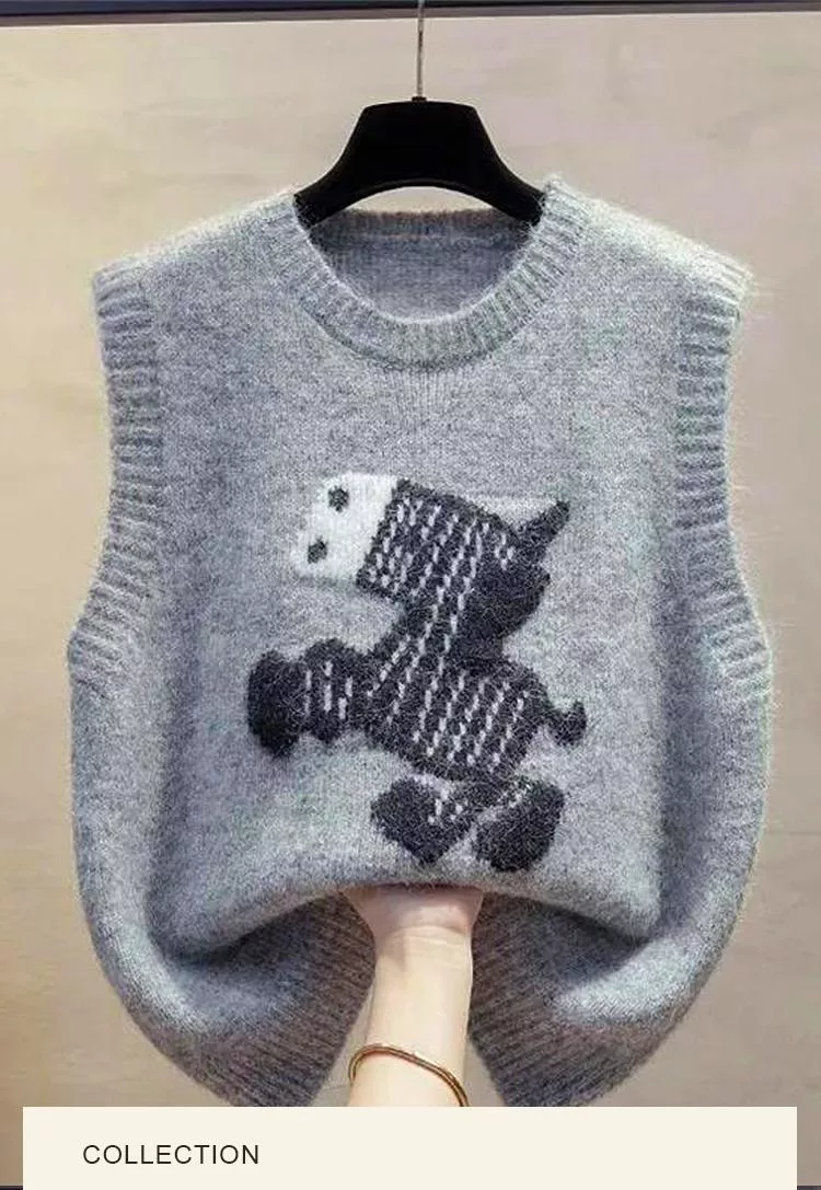 【MsMore】 chinc時尚連帽羊毛混紡針織馬甲軟糯寬鬆背心短外套# 124089 FREE 灰色