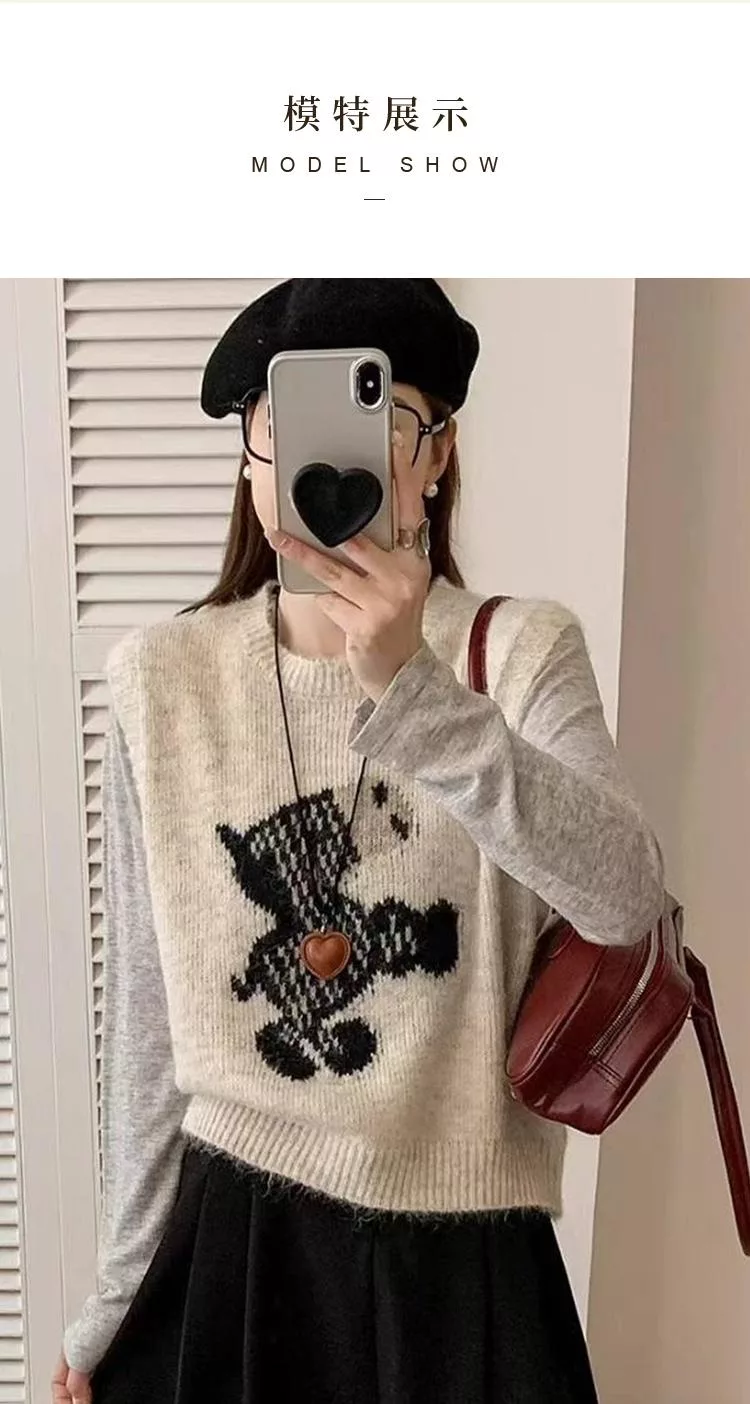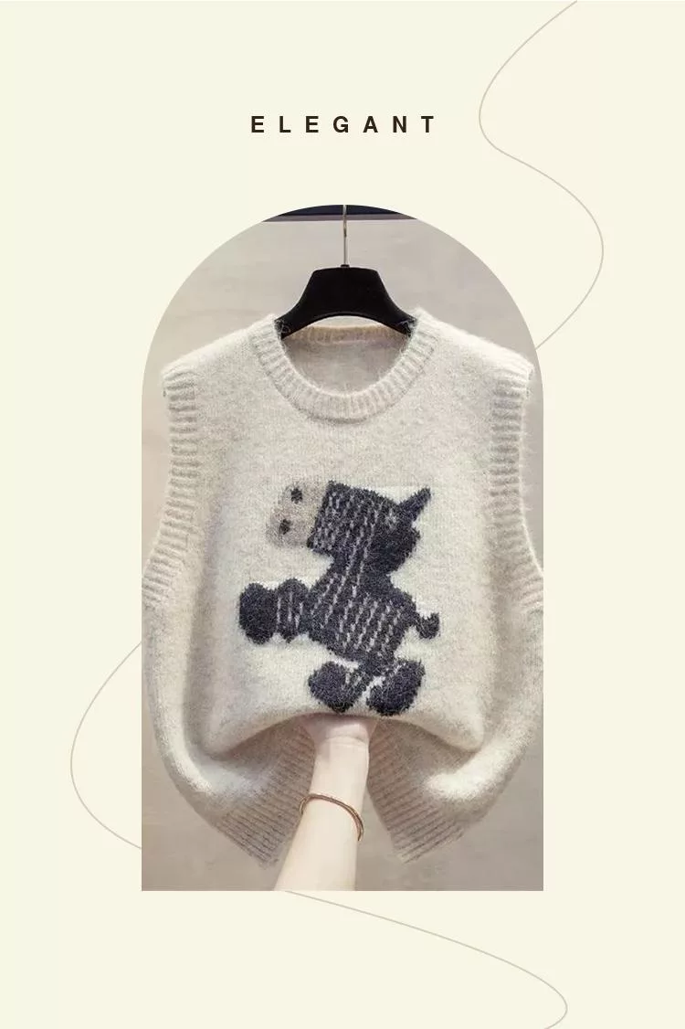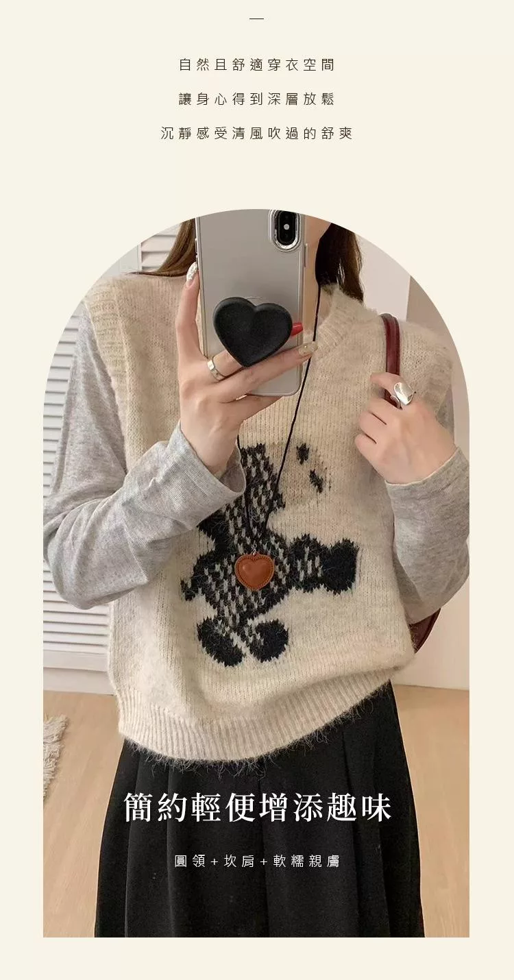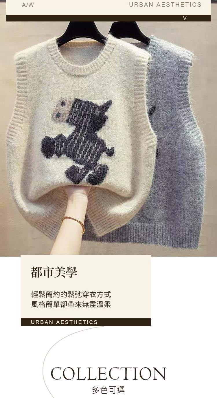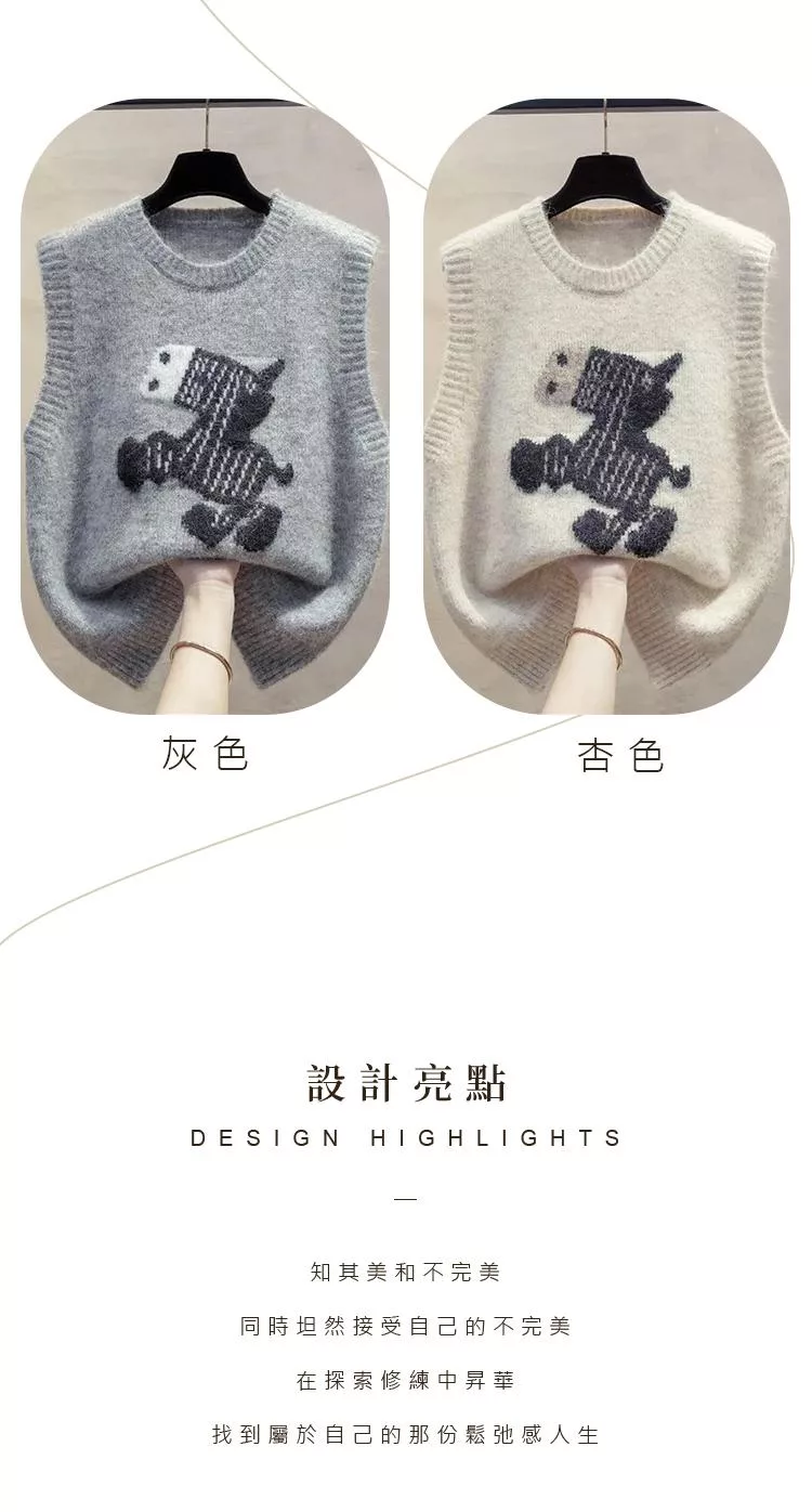 【初色】韓系斑馬緹花軟糯圓領坎肩寬鬆針織馬甲背心女背心-共2色-17236(F可選) F 杏色