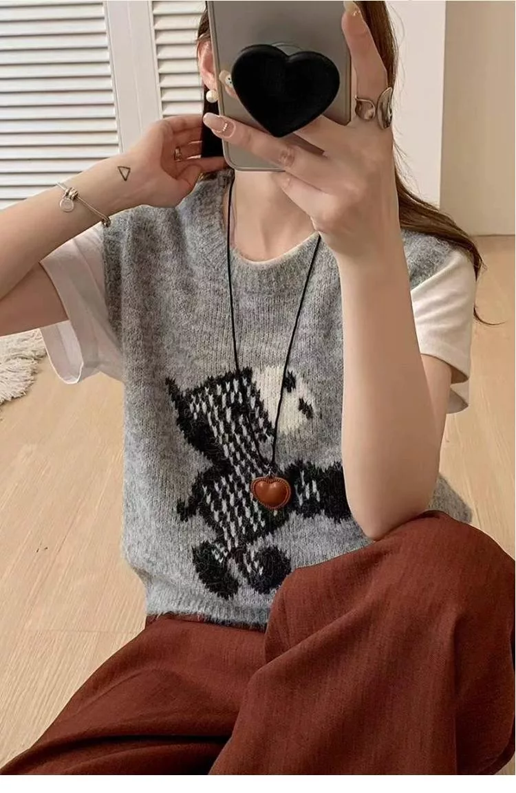 【初色】復古彩釦圓領無袖馬甲針織背心女背心-共4色-10281(F可選) F 灰色
