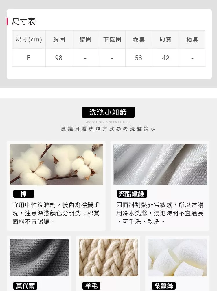 ●衣服勿沾染到彩妝、香水味、煙味及人為因素破壞商品。