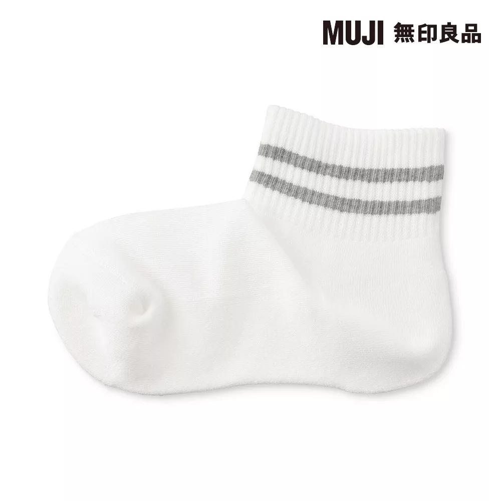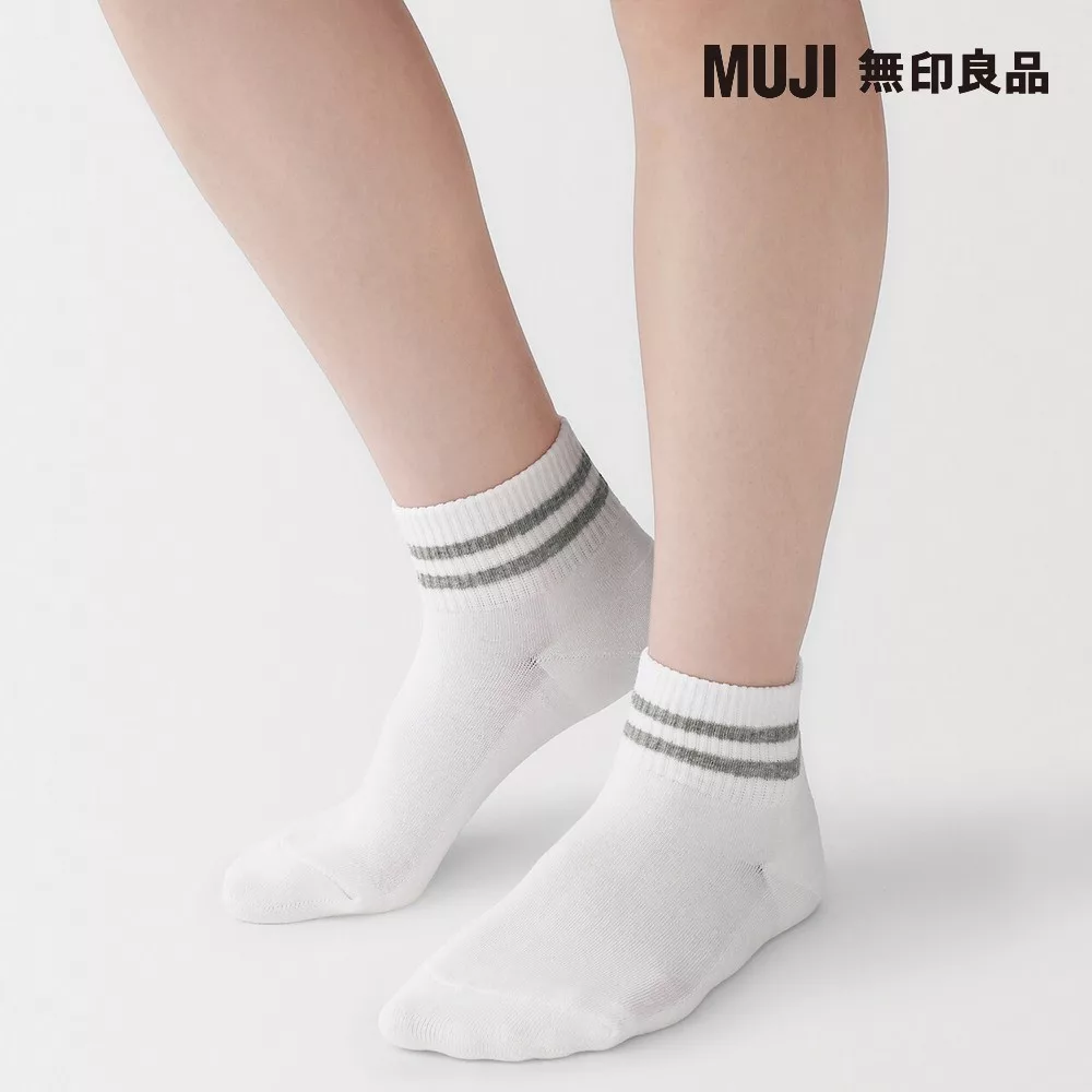 【MUJI 無印良品】女足口柔軟舒適圈絨直角短襪23-25cm 柔白紋樣
