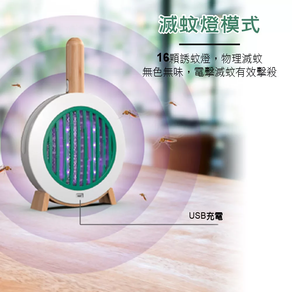 3in1充電式行動捕蚊燈 電擊+夜燈+照明 迷霧灰