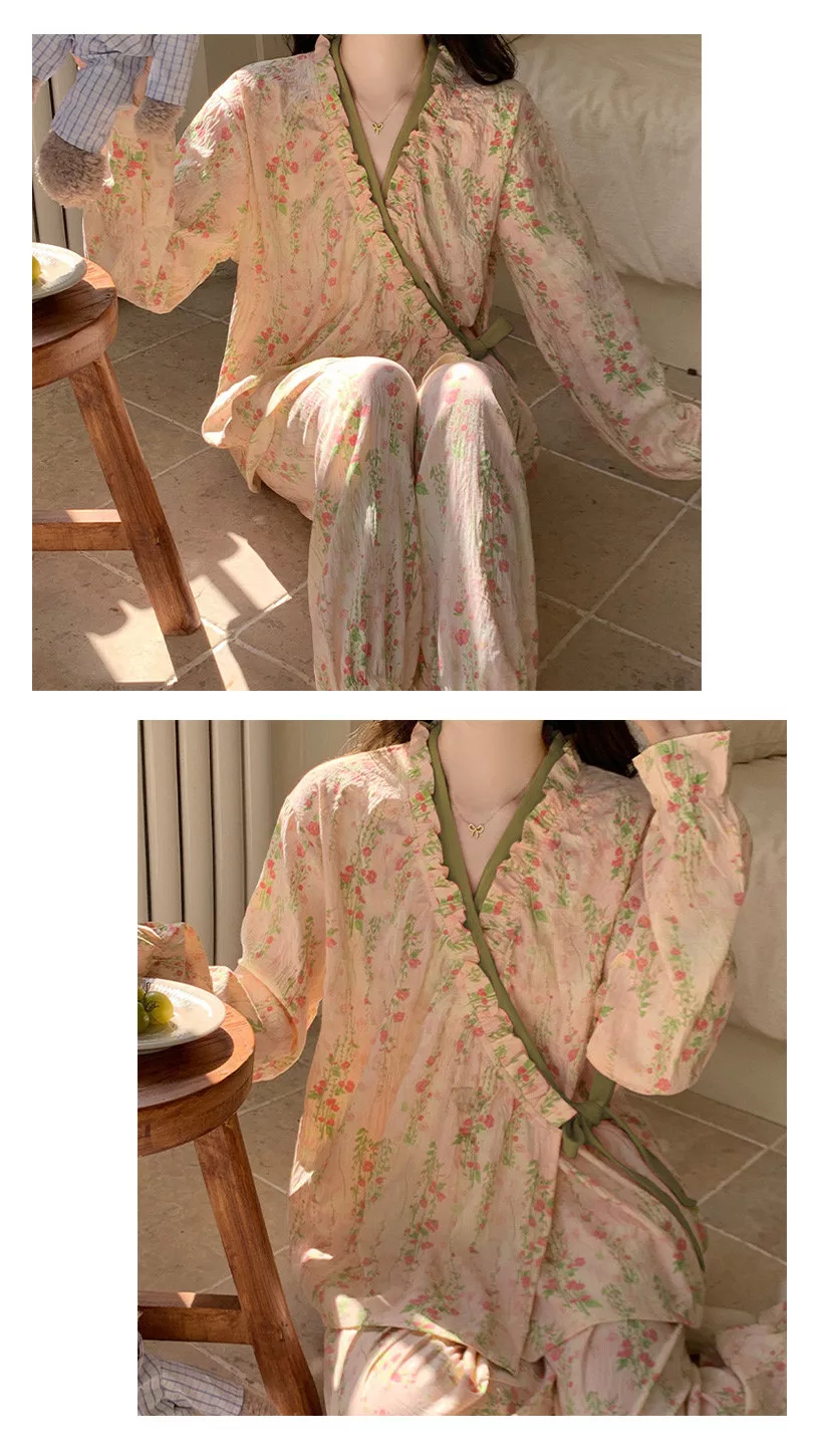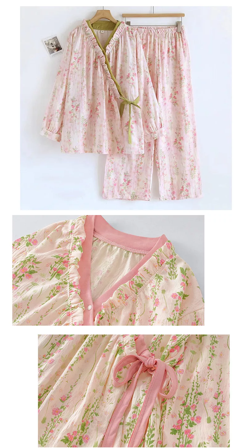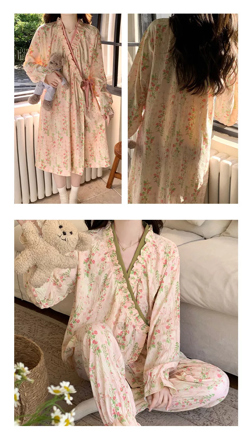 【AnZa】中式花園系和服雲朵棉休閒居家服(2款)     FREE 睡袍