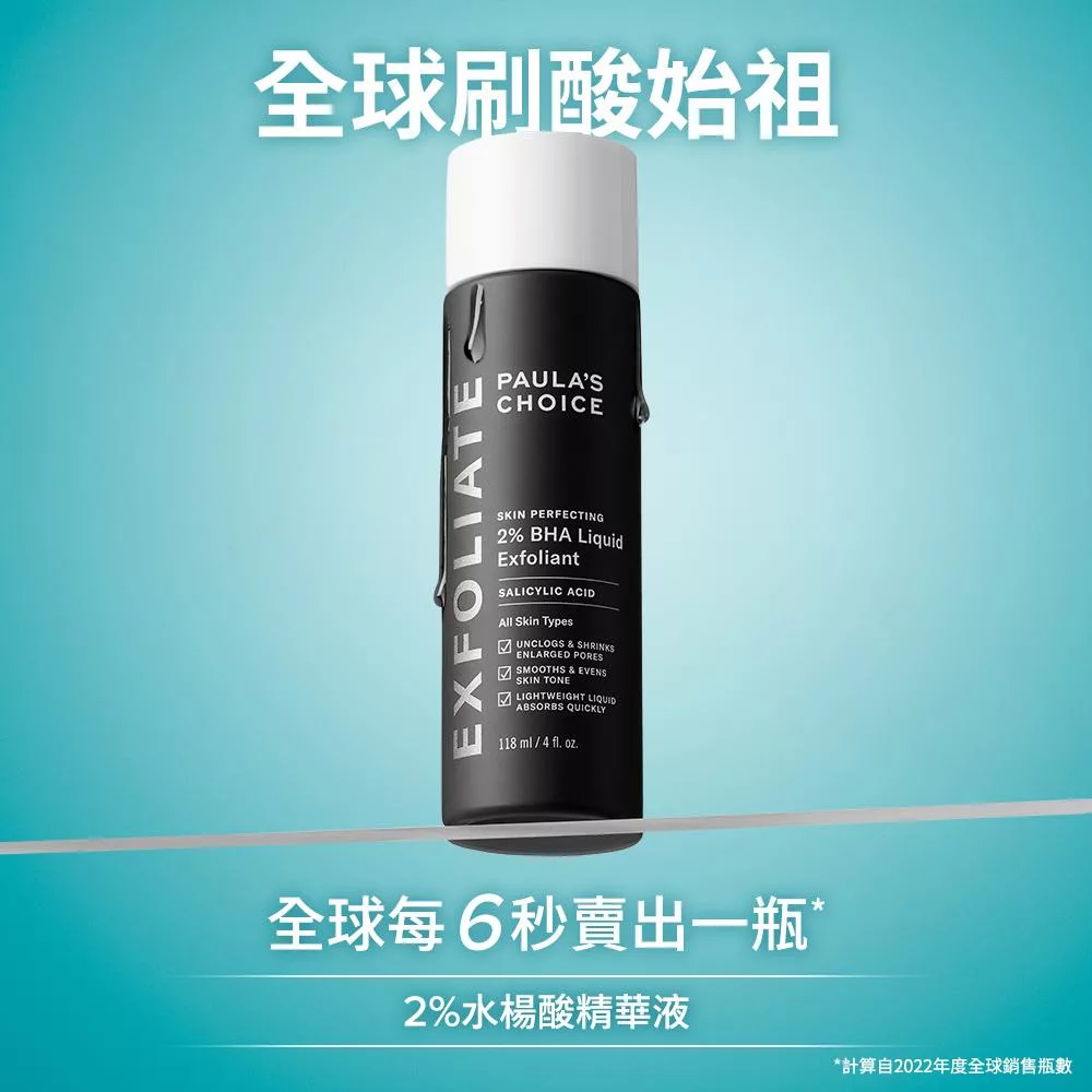 寶拉珍選熱銷NO.1全球刷酸始祖-免水洗去角質前導精華,專為粉刺痘痘及毛孔困擾設計,蘊含最高濃度2%水楊酸,在家就能做到居家煥膚!