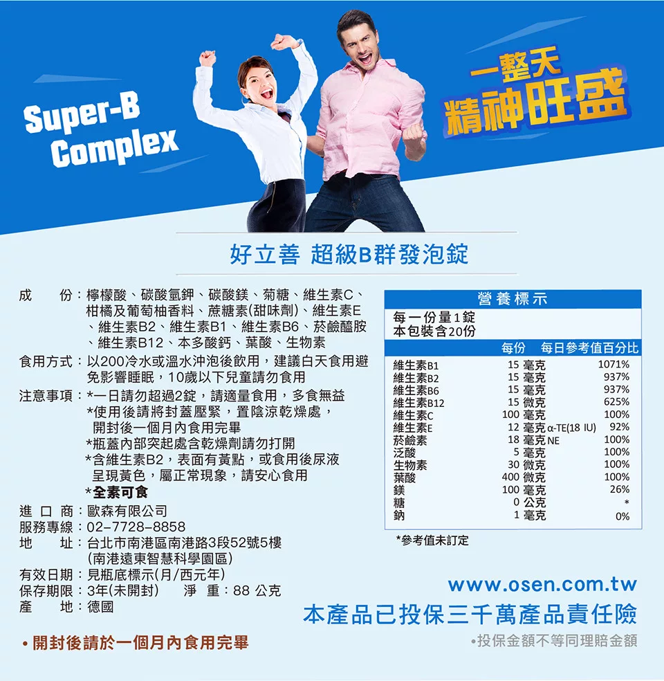 德國 好立善 超級B群發泡錠 (20錠)(到期日 2027/1/31)