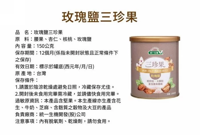 低溫無油烤焙,不添加防腐劑/甜味劑/漂白劑