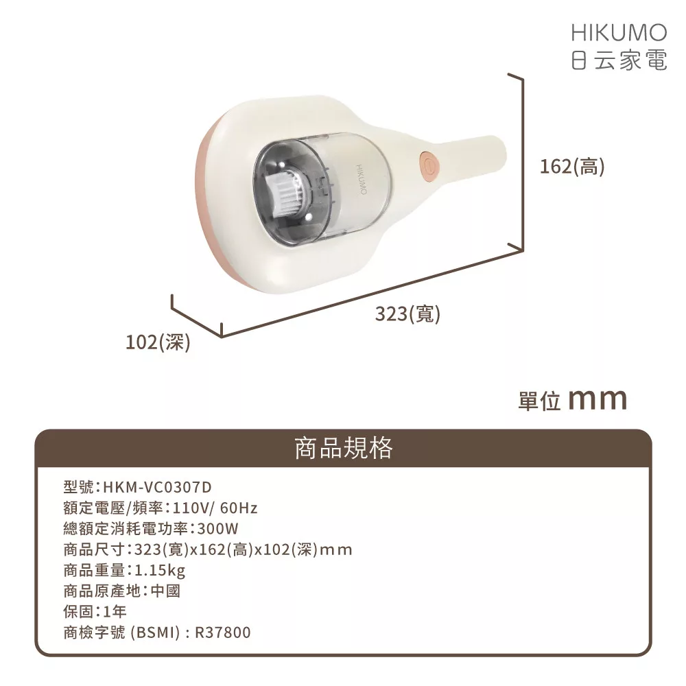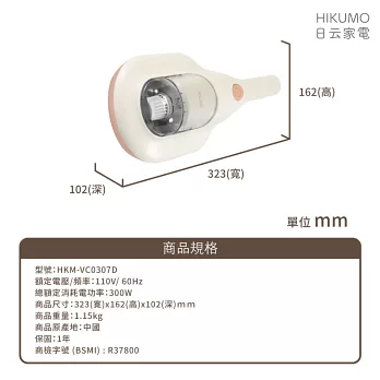 【HIKUMO 日云】勁量塵蹣機 HKM-VC0307D