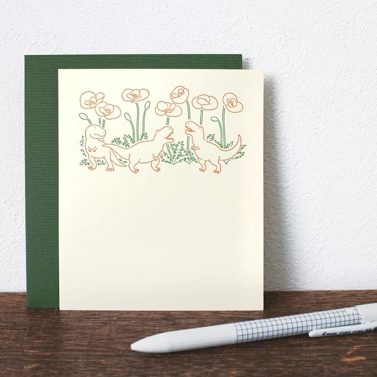 ▼【日本EL COMMUN】動物x花卉活版印刷信封紙組 ‧ 恐龍x罌粟花