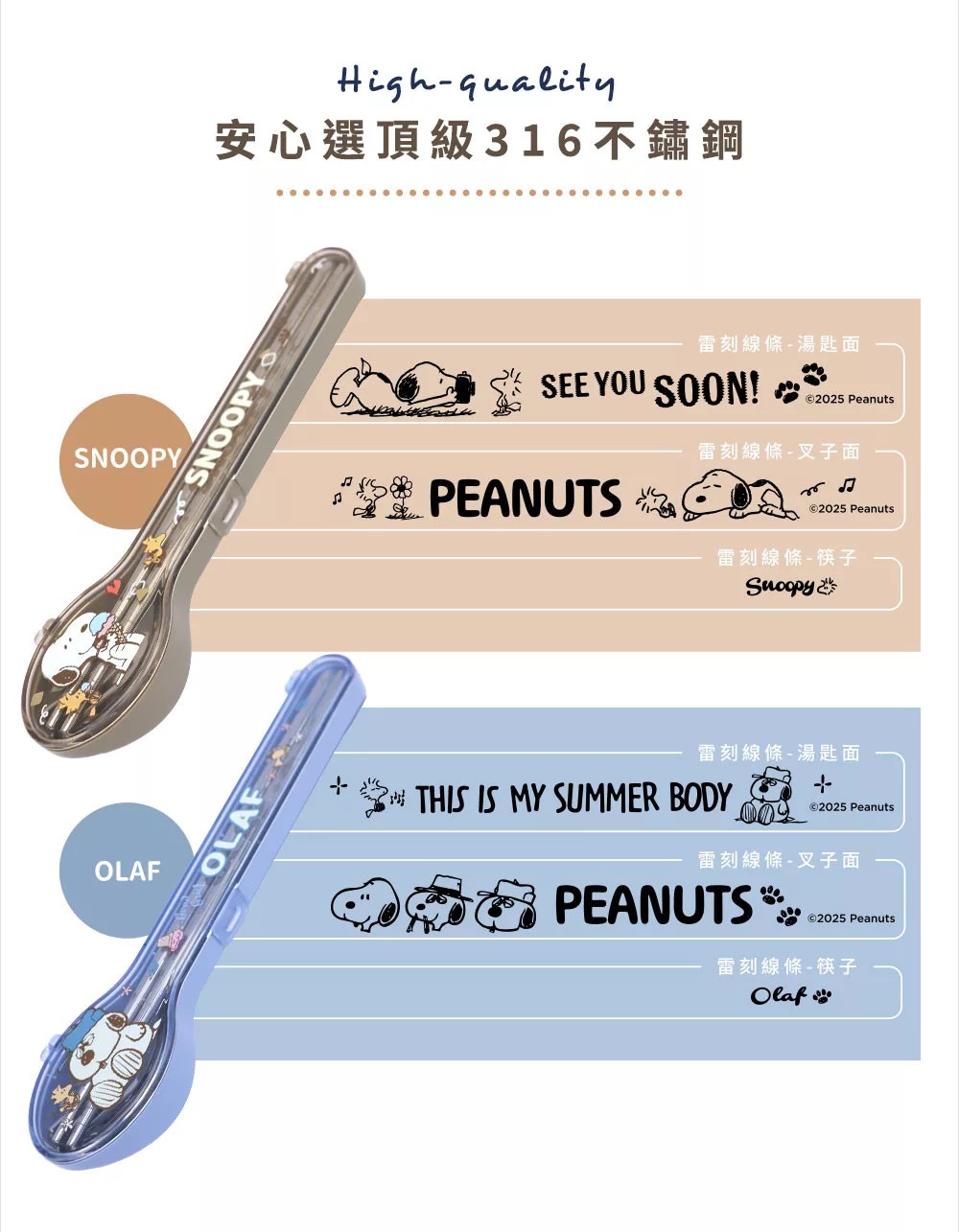【HOUSUXI舒希】史努比系列-316不鏽鋼餐具三件組-A3(任選) 史努比