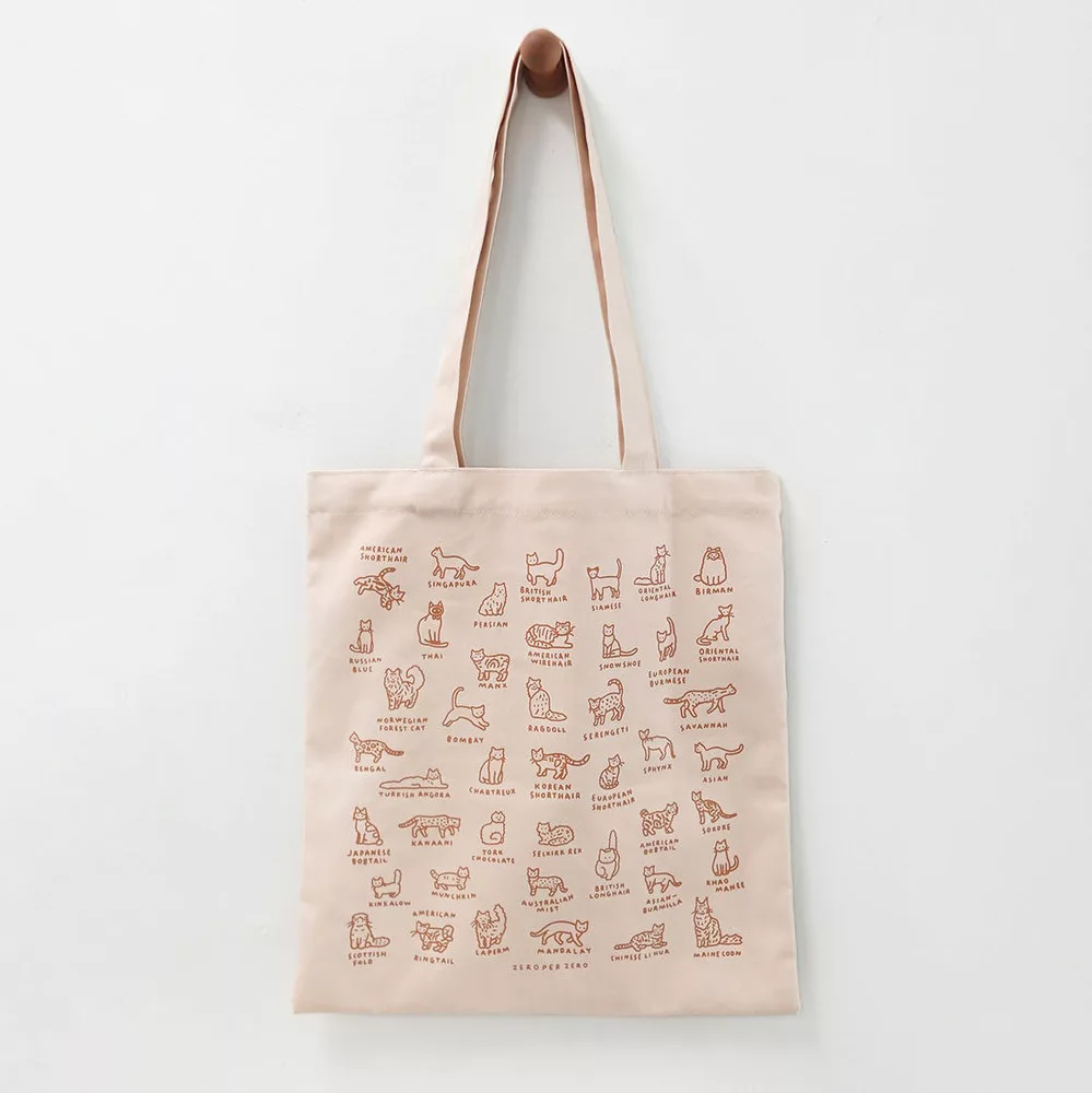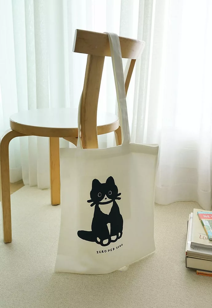 韓國 Zero Per Zero 肩背環保袋_ 燕尾服貓貓_白