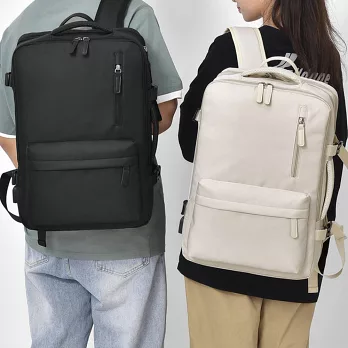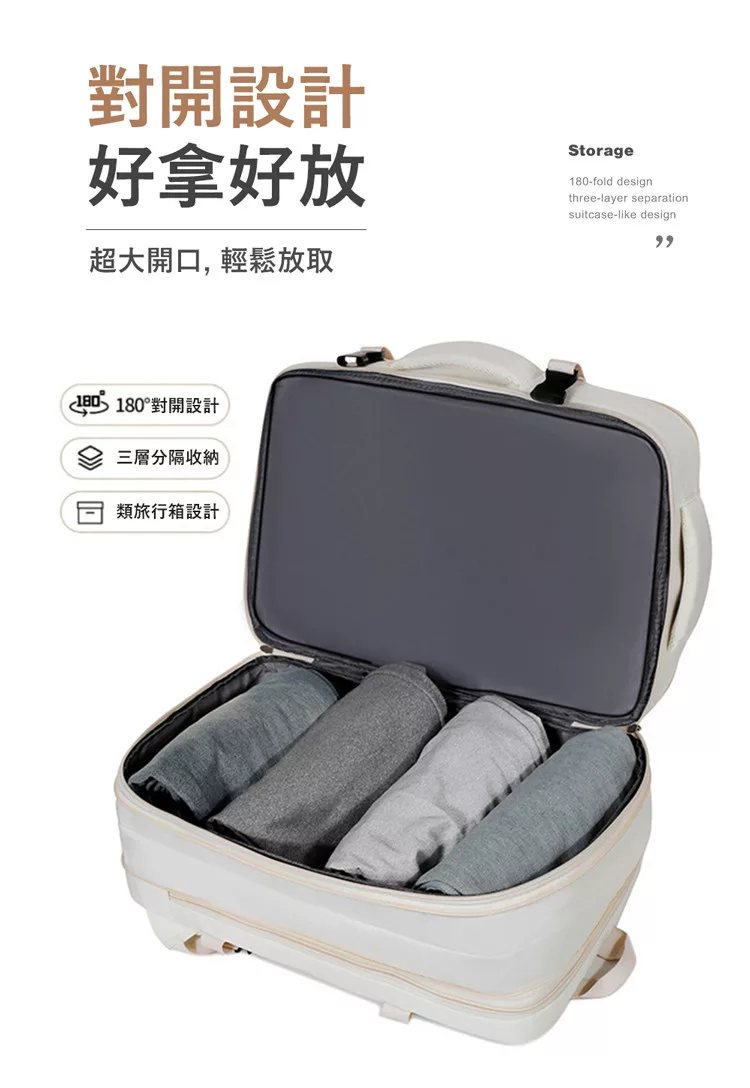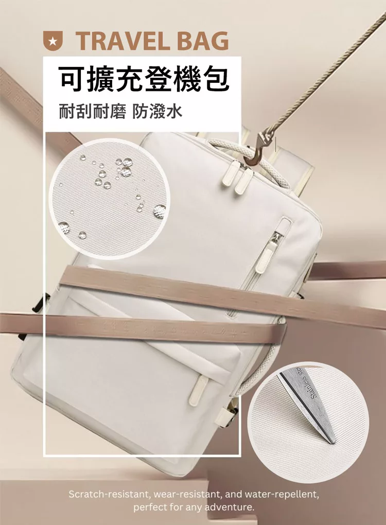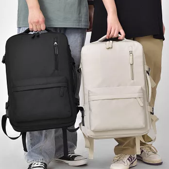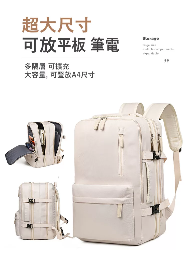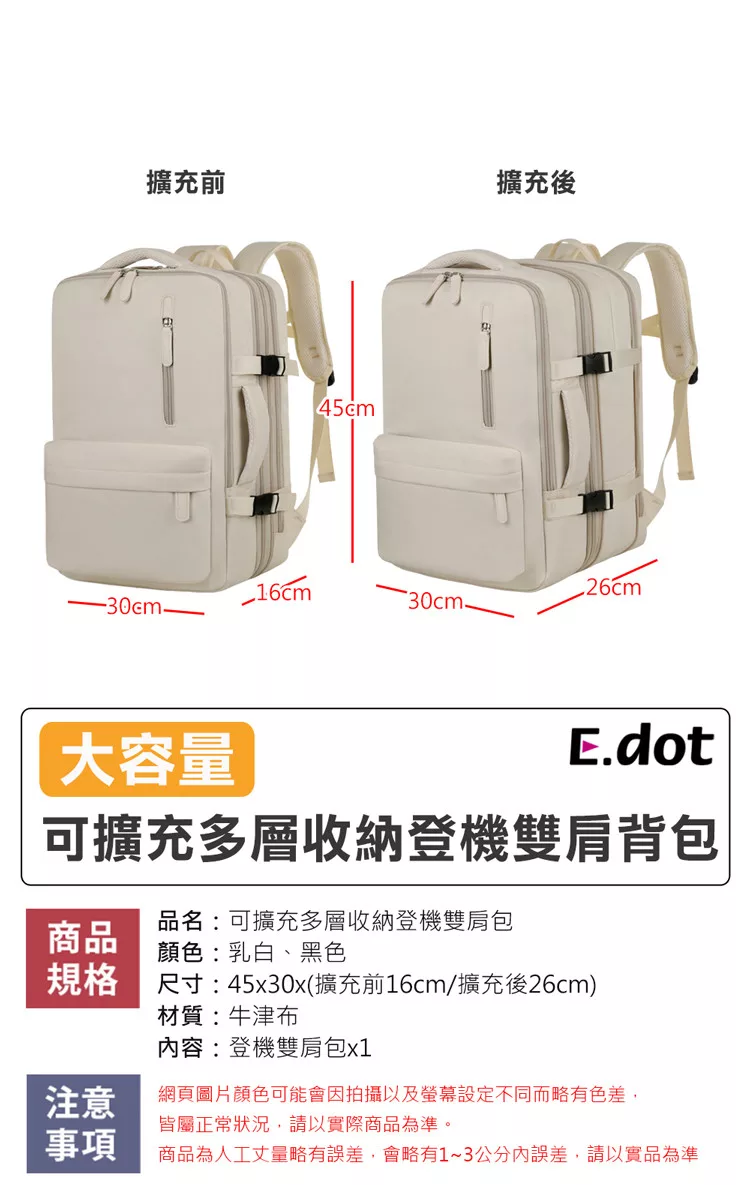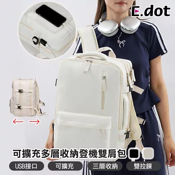 【E.dot】可擴充大容量三層旅行出差登機背包 乳白