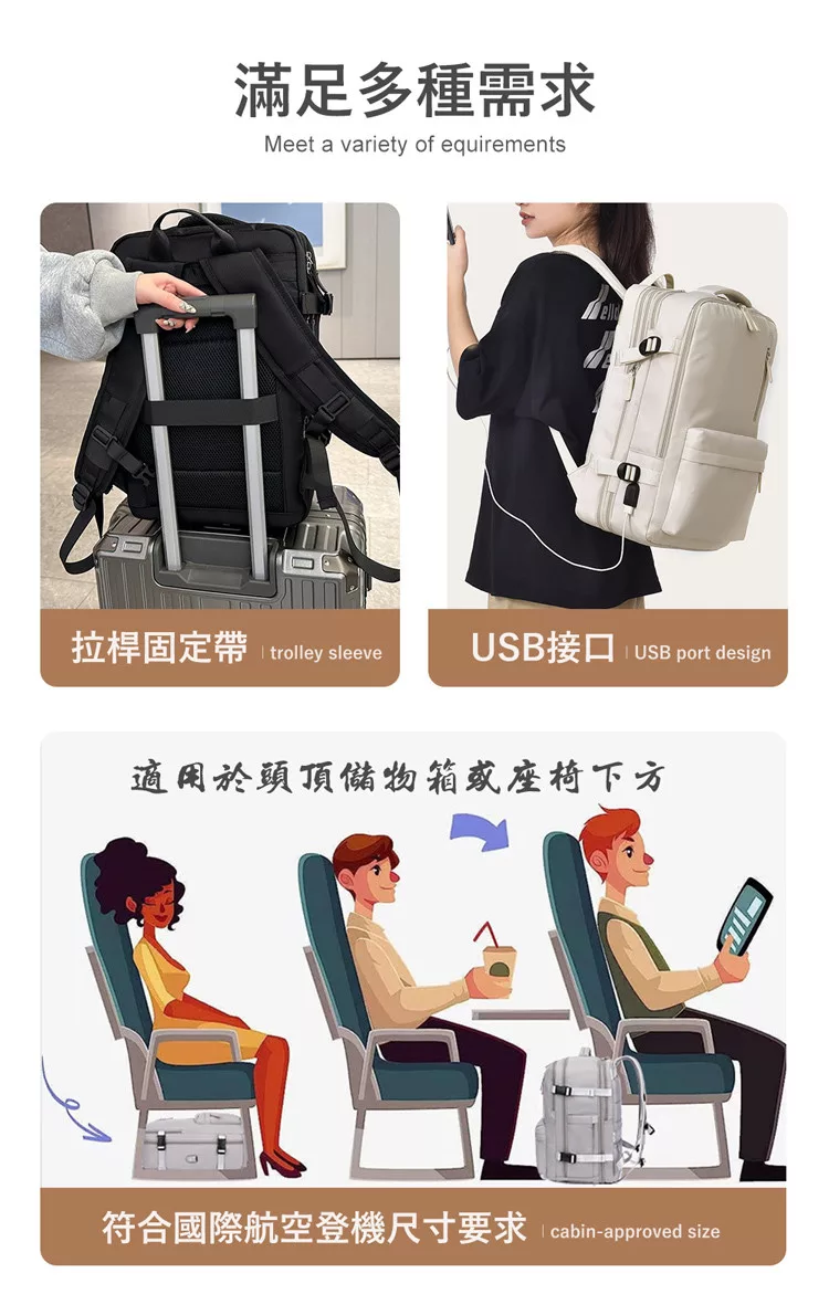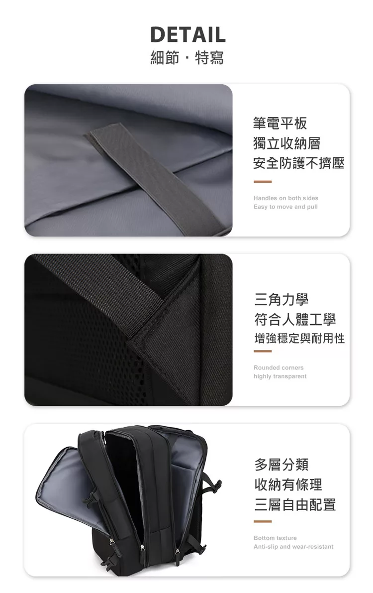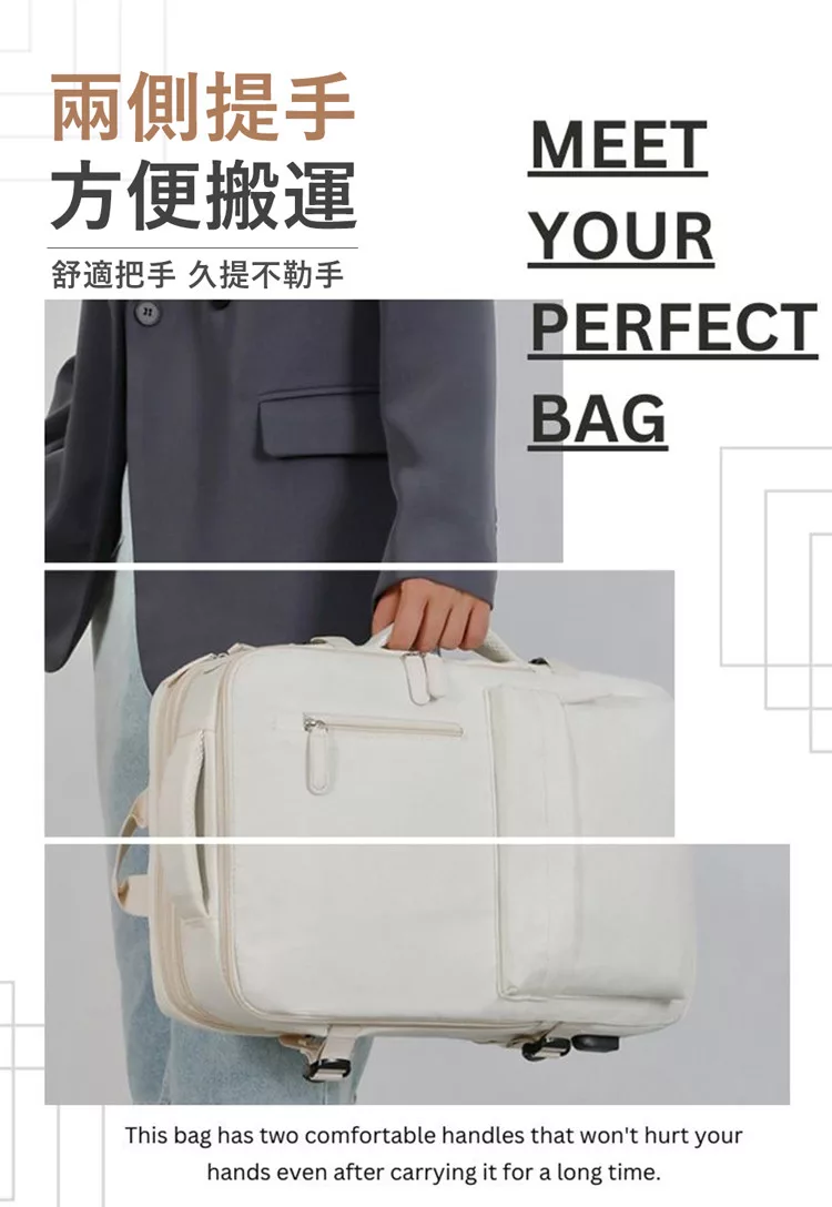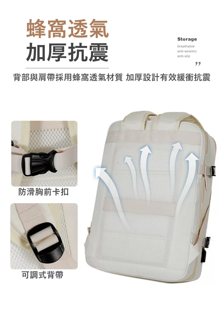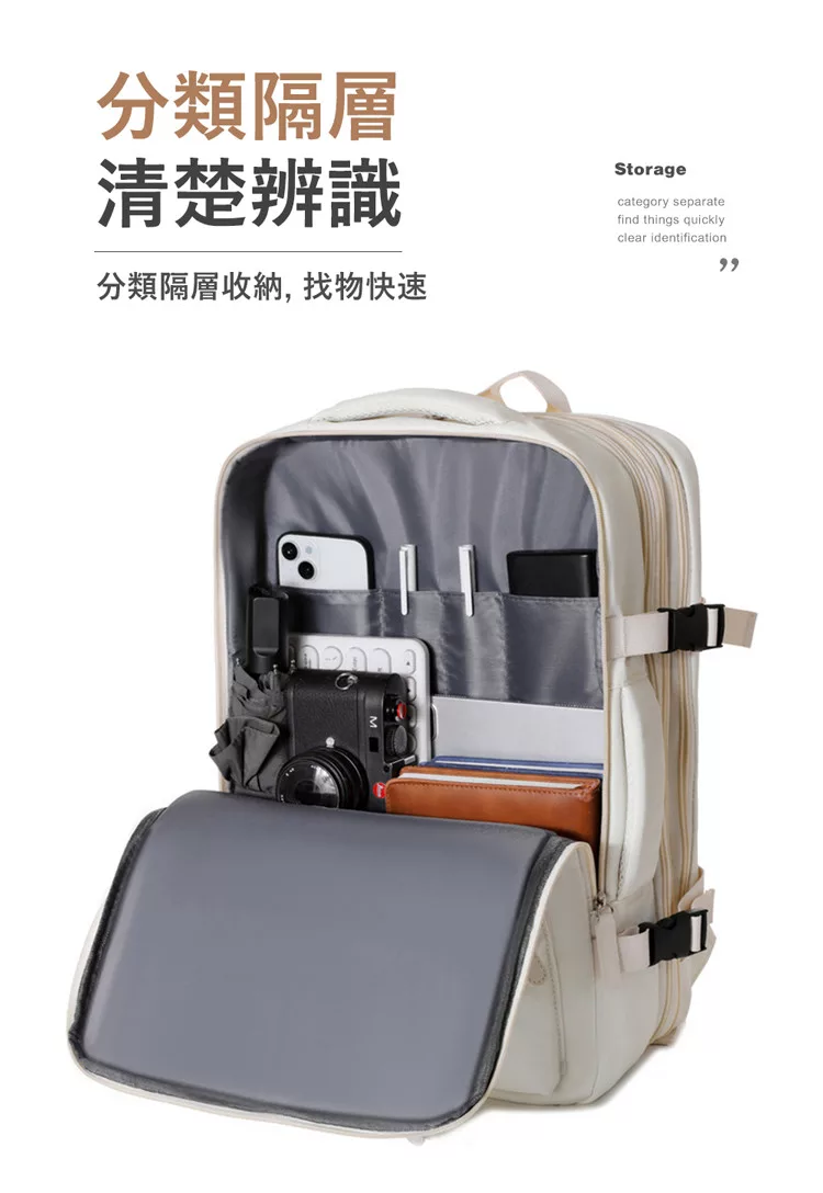 【E.dot】可擴充大容量三層旅行出差登機背包 乳白