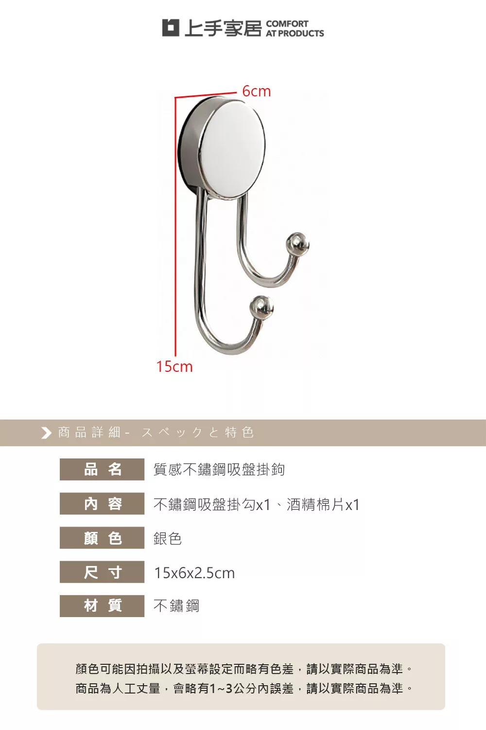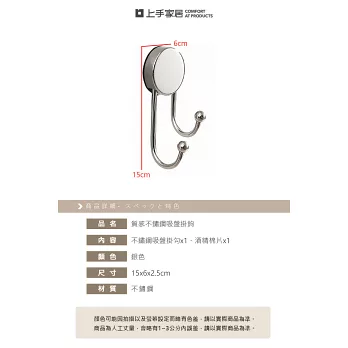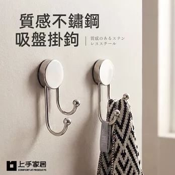 【上手家居】質感不鏽鋼吸盤掛鉤(無痕掛勾/吸盤掛勾/牆壁掛鉤/廚房掛鉤/浴室掛鉤) 銀色