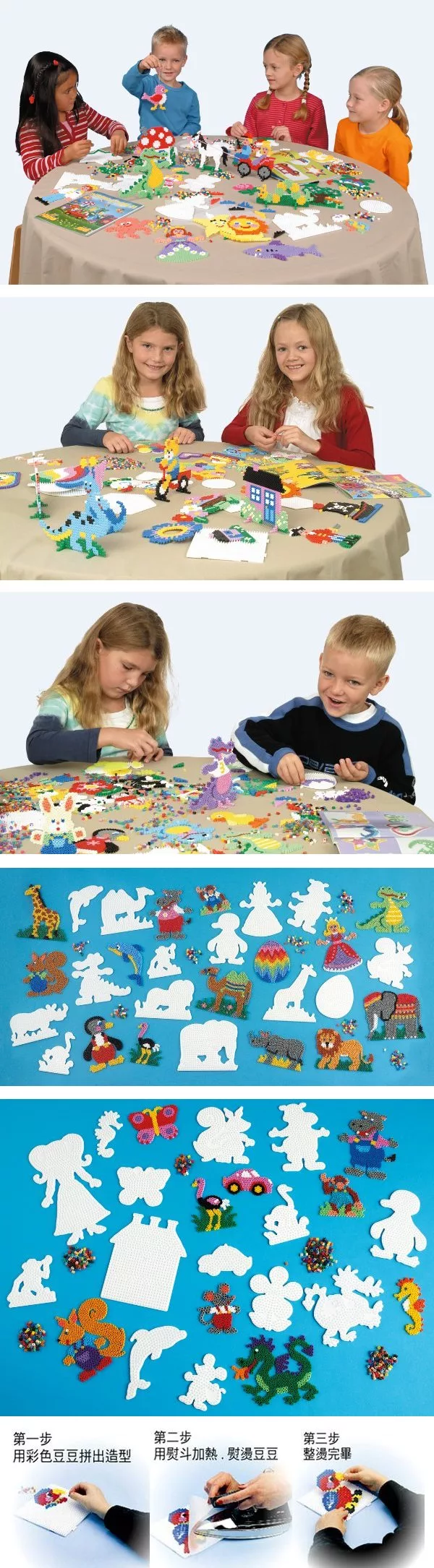 拼拼豆豆主要分三個基礎類別:豆豆、模型板、助燙紙,三者缺一不可。豆豆若經熨燙後為消耗品,模型板和助燙紙則可重覆使用。請盡量使用同一品牌以避免品質特性不均問題。