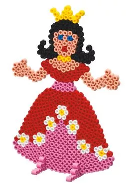 主要包括模型板【大正方板*2、公主、青蛙】、拼拼豆豆【混色豆豆*6000顆,拼拼豆豆直徑為0.5cm】、6作品支架、助燙紙、設計圖;豆豆若經熨燙後為消耗品,模型板和助燙紙則可重覆使用。大正方形的板子邊緣有卡榫,可以跟同品牌 Hama 的大正方模型板互卡,延伸成為更大底板。