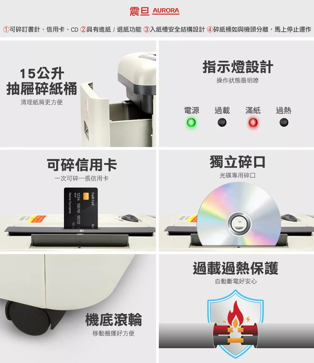 AURORA震旦 6張碎段式經濟型碎紙機(14.3公升)AS662C