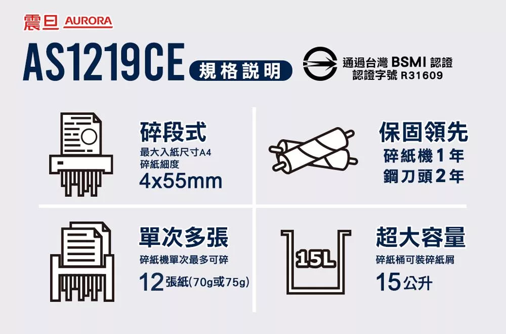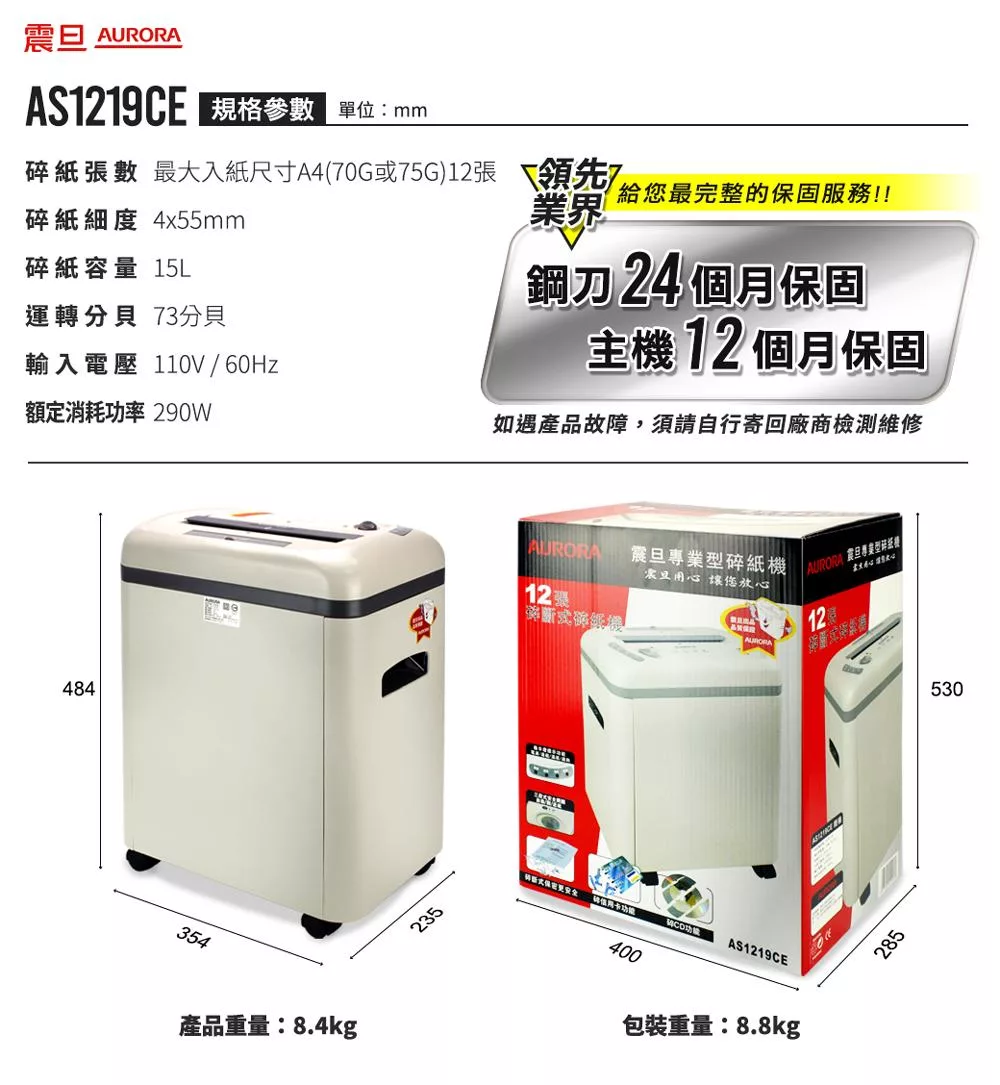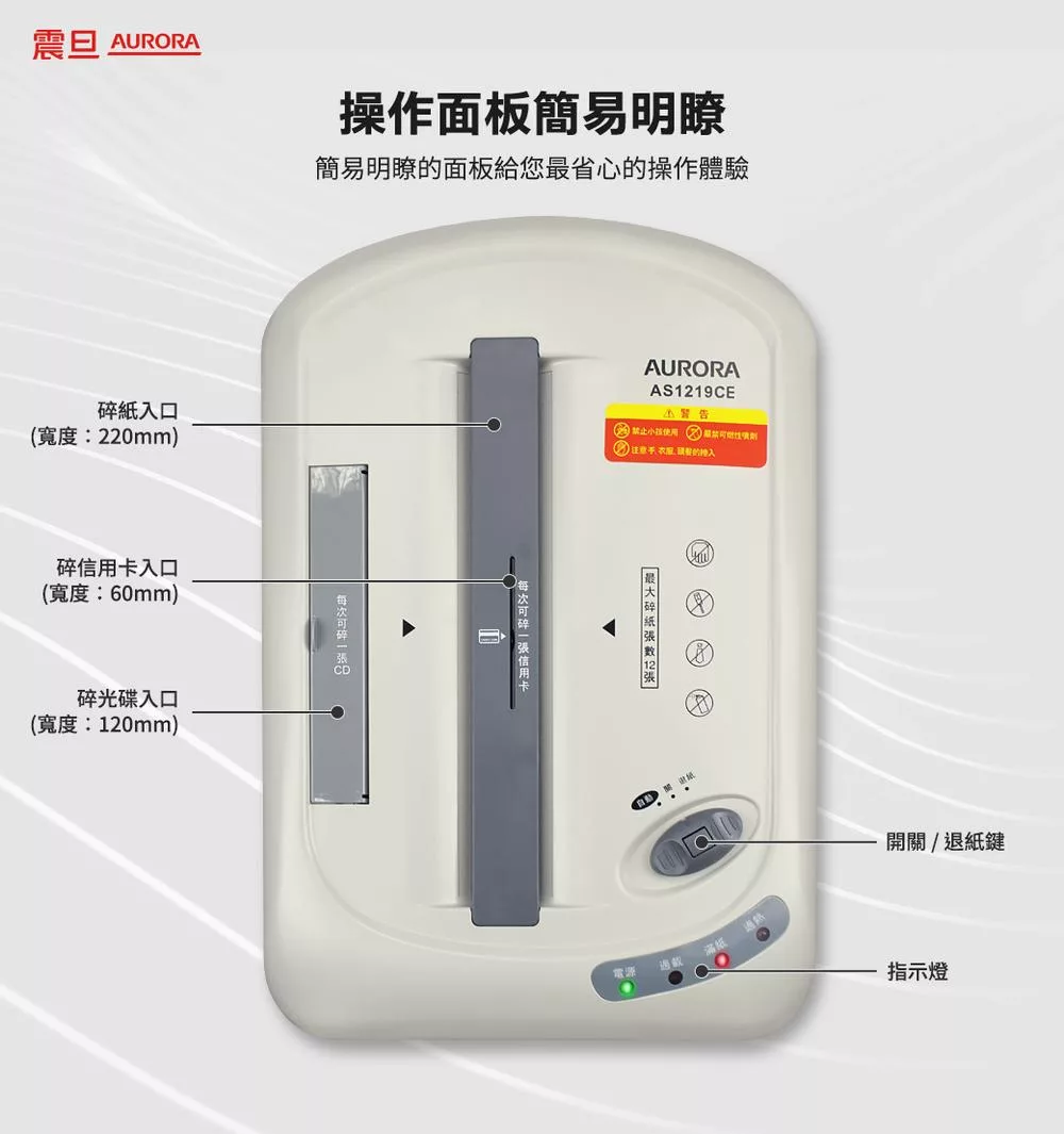 AURORA震旦 8張直條式多功能碎紙機(12公升)AS828SD 白色