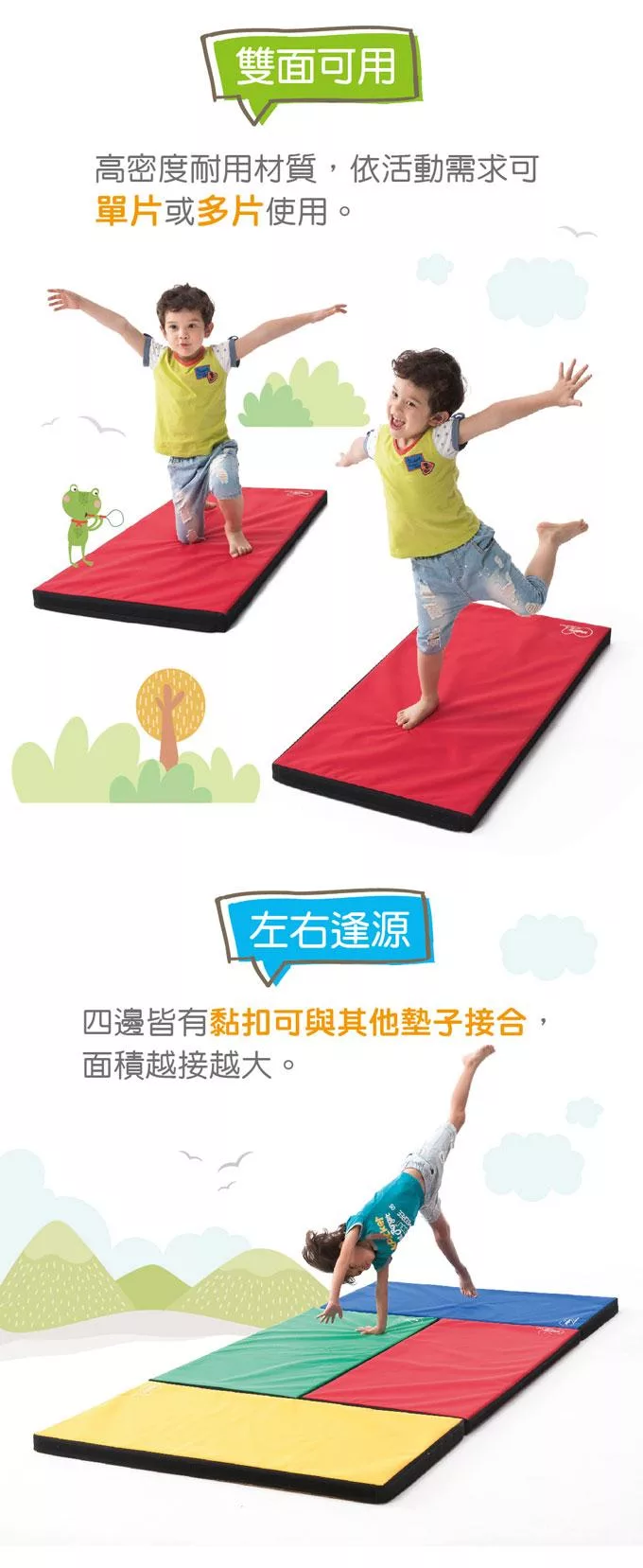 1. 雙面皆可進行墊上遊戲活動。