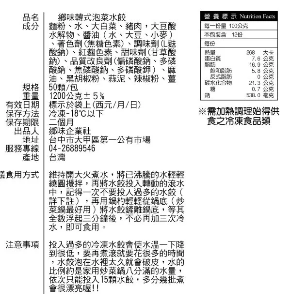 1.料理食品為短效期商品,皆為接獲訂單後製作,若須指定到貨請於住址欄後方備註希望收貨的日期,以免商品已排入製作或配送。經宅配送出後請勿任意更改訂單寄送資料,以利商品如期出貨。【轉廠商出貨商品,出貨日期: 可接受指定到貨日期,恕不接受指定配送時段】
