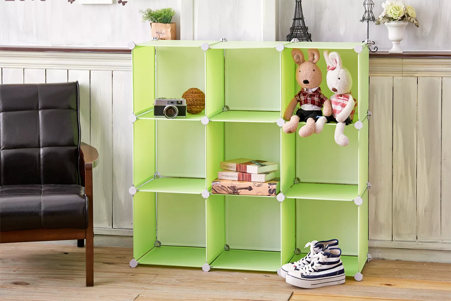 【Yeya也雅】萌想樂園兒童玩具繪本分類收納櫃(4小格+4儲物凳)-DIY- 躲貓貓