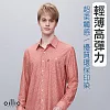 oillio歐洲貴族 長袖商務襯衫 輕薄洞洞超彈力 滿版印染 口袋方便攜物 M 紅色