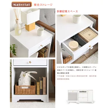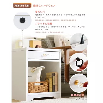 頂端附二孔插座且櫃內藏電器線路孔位,使電線不破壞美觀外型,下方配置一收納小抽及大開放收納空間,隨四季變換調整收納擺飾,正統日本設計,以日本精神的設計和高品質的材質,打造出兼具品質與設計的雙重質感要求。簡約設計質感融合整體居家更潮。在細節處處用心,充分顯現當代設計簡單就是美的魅力。【Sato】ANRI小日子單抽開放邊櫃‧幅40cm (樸素白)讓人隨時都能找到一段時間,一個空間讓自己安靜下來,減慢自己生活的速度感,重新與自己的心靈對話。