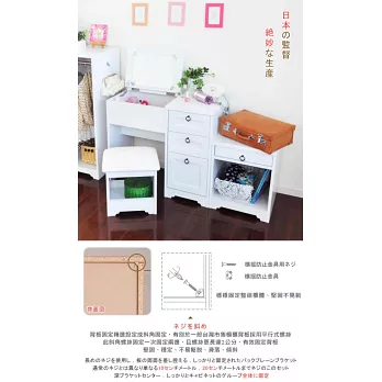 【Sato】日本品牌,職人精神的手工、講究獨特的細緻、質感上乘的細節、豐富變化品味極致。面板前緣為PVC厚封條設計,復古感踢腳板,附贈2種把手(水晶感及金屬工業風)隨意更換,抽屜附滾輪滑軌,開闔省力。背板設定為斜角固定,有別於市售收納櫃採用平行式螺絲的缺點,此斜角螺絲固定於二邊,且長達2公分,有效固定背板,堅固、穩定、不易鬆脫、不滑落、不傾斜。抽屜附滾輪滑軌、層板可依實際需要調節高低,因應不同高度的置物需求,實木櫃腳附刮軟墊,保護地板貼心細節,螺絲孔處附木紋貼紙予以美化,注重細節美感。