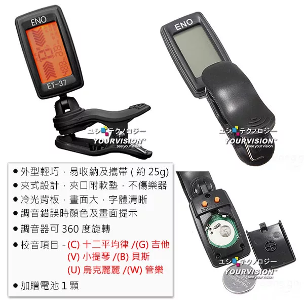 吉他 烏克麗麗 貝斯 小提琴 十二平均律 輕巧易攜夾式液晶調音器(360度旋轉 多種調音模式) 液晶螢幕矯音器 弦樂器配件