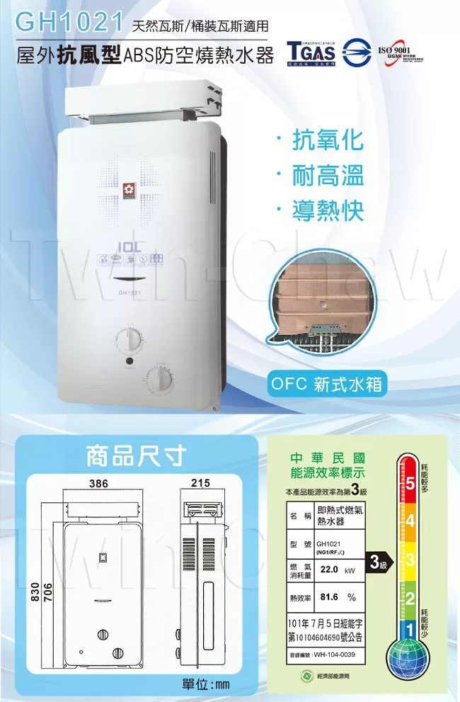 莊頭北 10公升 瓦斯加強抗風型屋外抗風型 TH-5107ARF 送基本安裝 (LPG液化瓦斯)