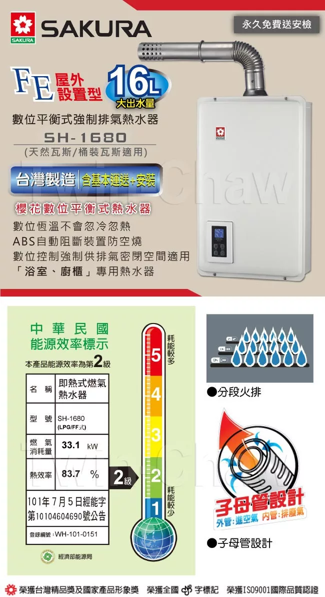 液化瓦斯83.7%  (能源效率第 2 級)